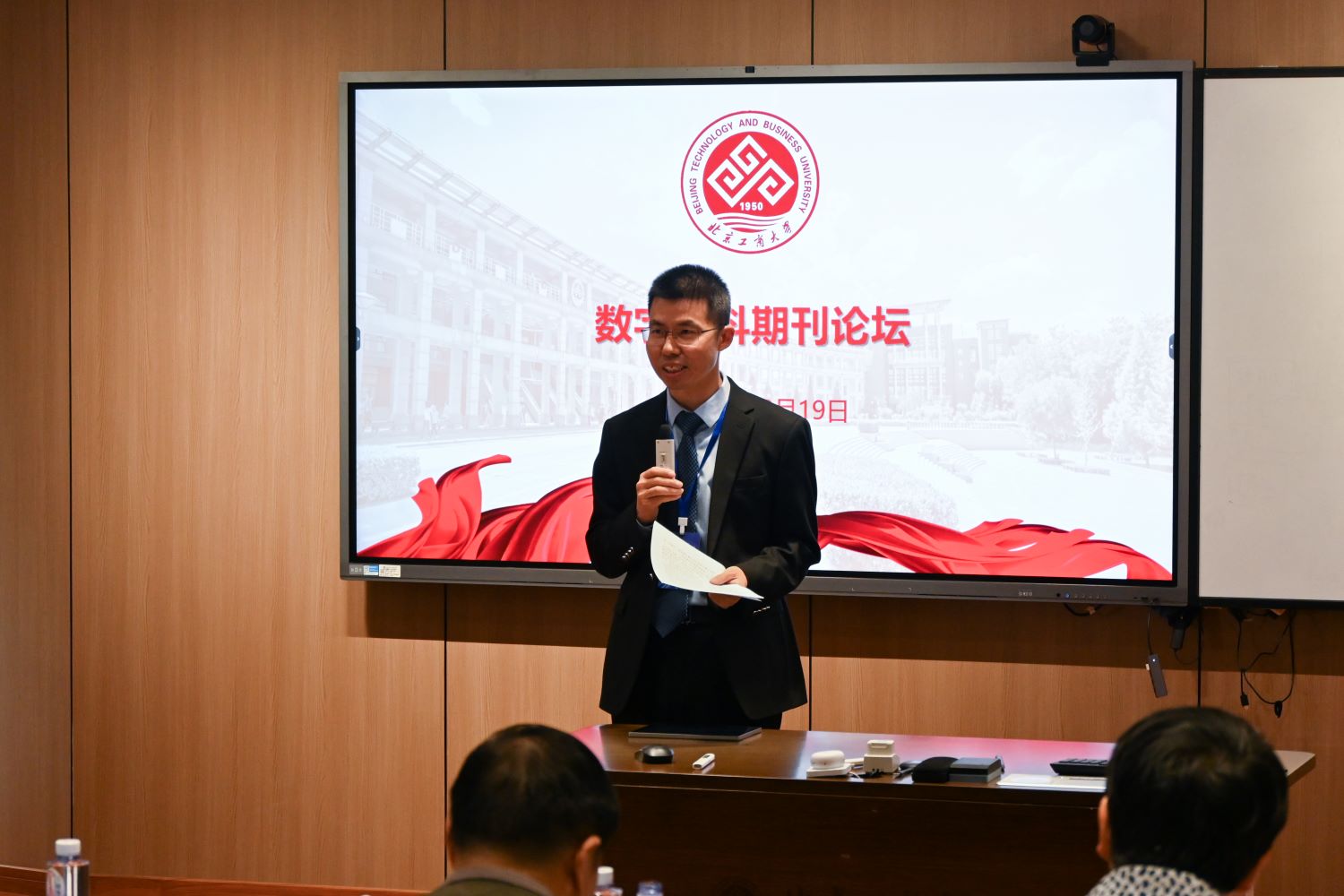论坛听取了学报编辑部副主任王轶关于“学报建设与当前转型情况”的报告。中国会计学会副秘书长、《会计研究》主编刘国强,中国审计学会副会长兼副秘书长、《审计研究》主编刘力云,《统计研究》常务副主编赵军利,《经济学动态》编辑部张彩云副研究员,《法学家》编辑部高圣平编审,《政法论坛》副主编陈景善,《系统工程理论与实践》编辑部主任李琳,《经济理论与经济管理》主编杨其静,《环球法律评论》编辑部主任姚佳,中国人民大学书报资料中心靳毓编审以及《金融研究》编辑部负责人等来自11家权威期刊(机构)的特邀嘉宾,围绕夯实期刊特色、提升期刊学术质量、加大期刊国际影响力等话题进行了交流,为学报以学术期刊高质量发展推动数字商科建设提供了重要思路和宝贵经验。