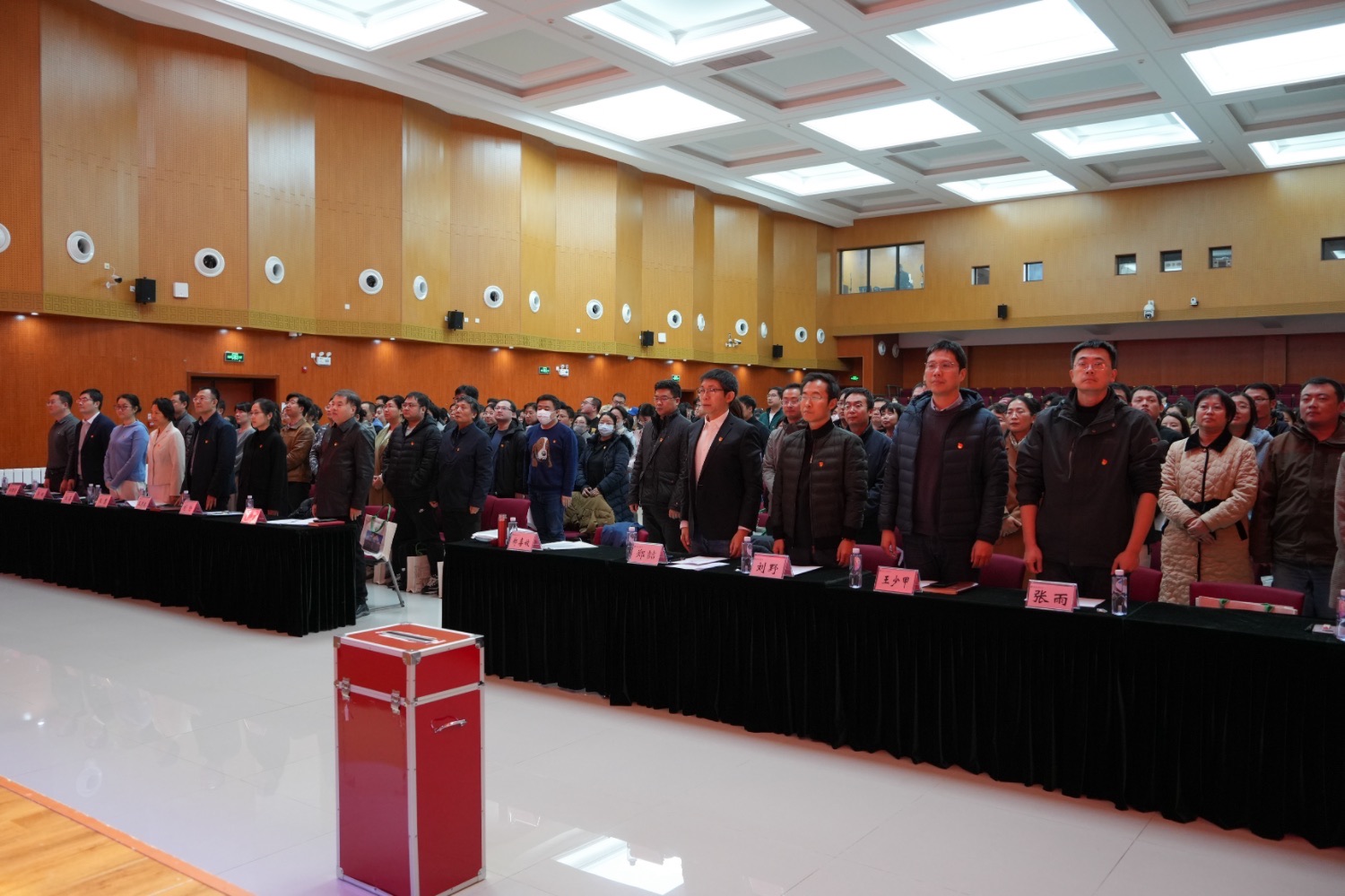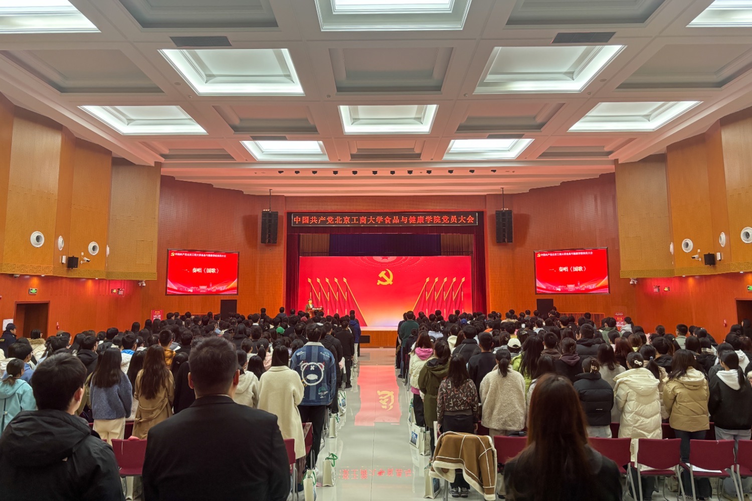 大会在庄严的国歌声中拉开帷幕,全体党员起立唱响国歌。