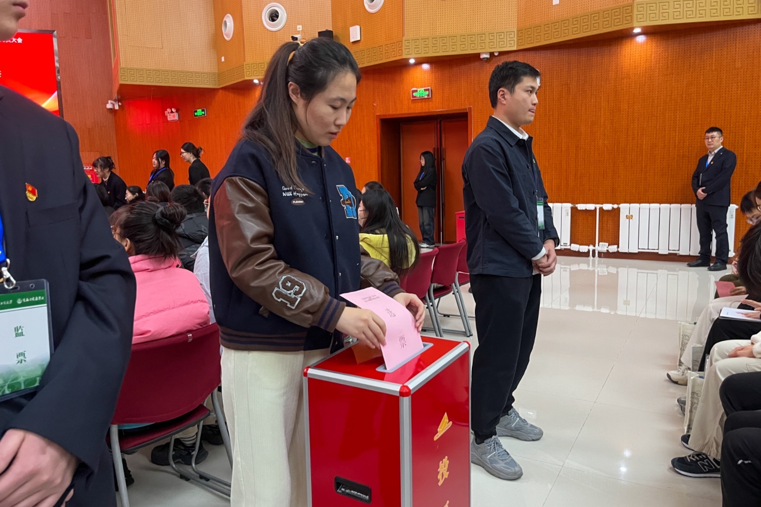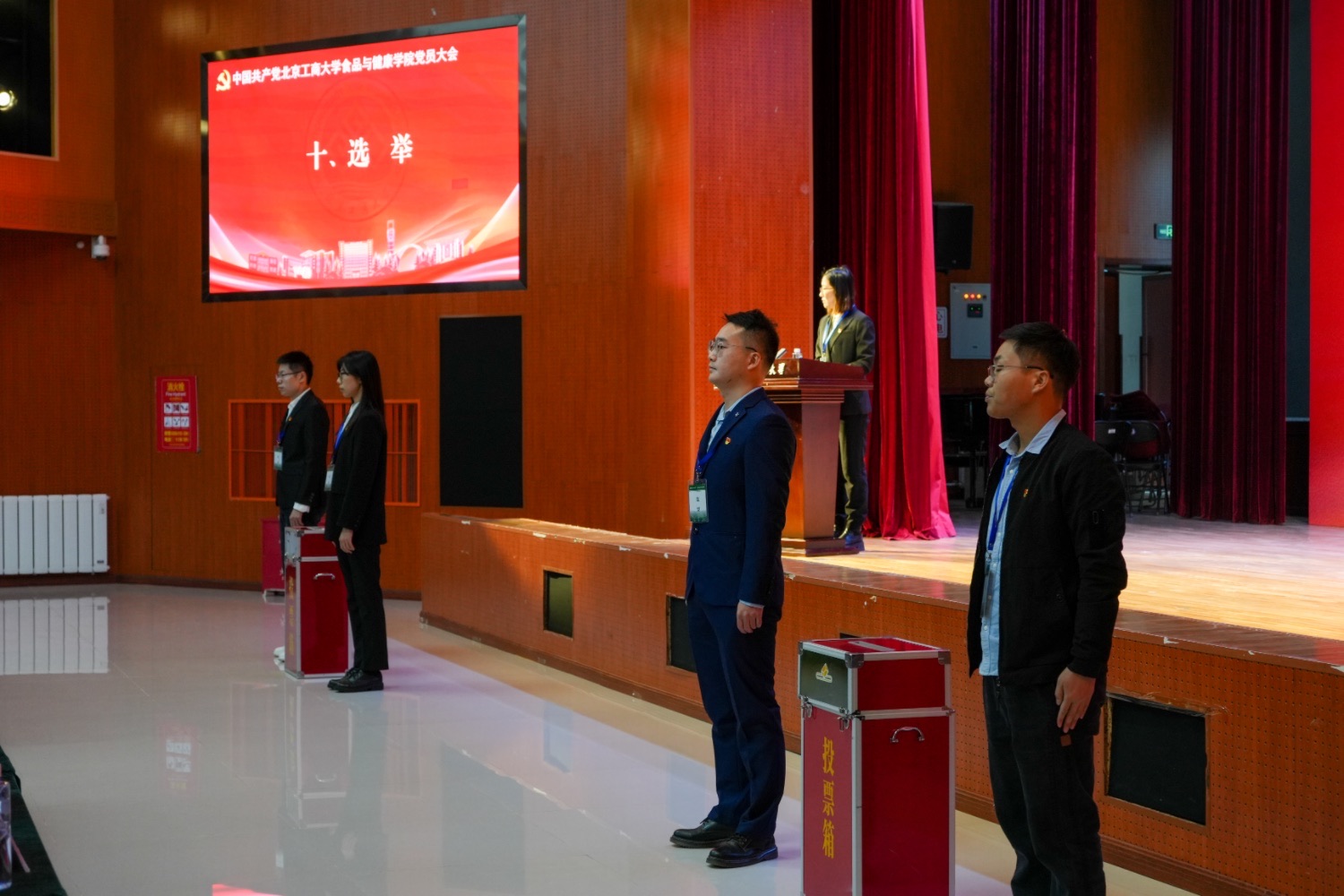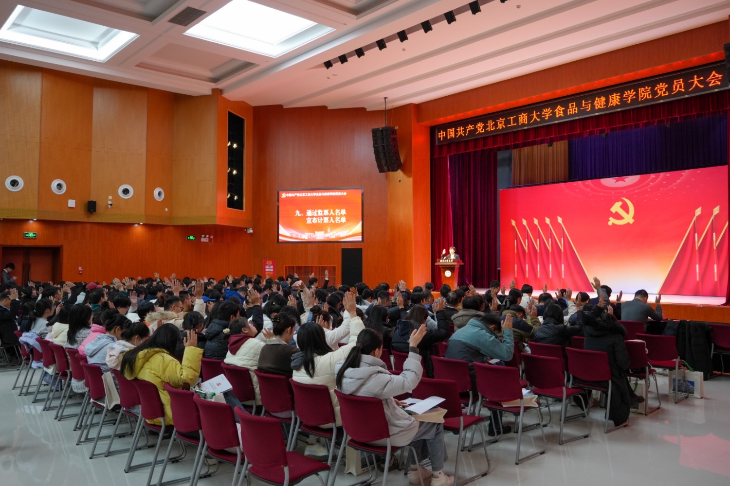党委委员郑喆作党费收缴、使用和管理情况的报告。全体党员审议并通过了两个报告以及委员候选人名单,大会选举办法,监票人、总监票人名单。