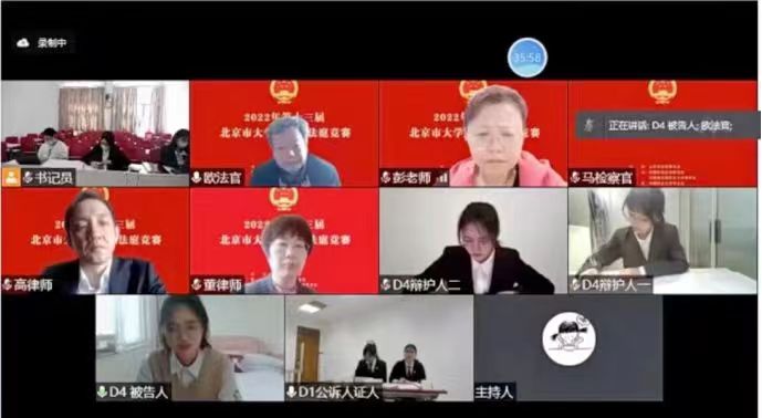 我校代表队由法学院2019级本科生侯雨晴、邹颖凡、王天问、王雪妍、王雅茜、孟聆雨6位同学组成,教师郭纹静、陆侃怡、李子龙担任指导教师。第一轮比赛,我校模拟法庭方对阵中国农业大学代表队。经过全体队员的精心准备与通力合作,模法代表队初战告捷。第二轮比赛,我方作为辩方迎战同样在第一轮比赛中获胜的团队色情片林业大学,我代表队在激烈的控辩对决中尽显风采,再次以精彩的表现获得赢得本场胜利,直接晋级总决赛。在总决赛中,面对中央财经大学代表队所指控的“故意杀人罪”“以危险方法危害公共安全罪”两个罪名,我校代表队从容不迫,坚持无罪辩护,全面分析,展现了北工商学子的风采。最终我校获得团队二等奖。