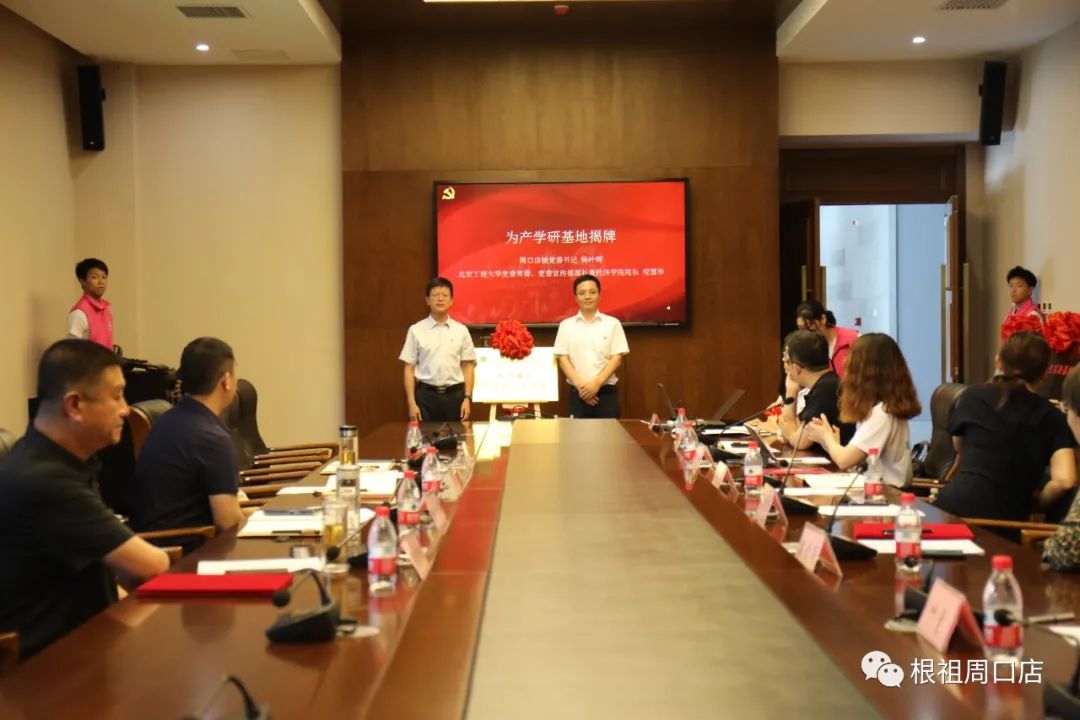 双方就学生实践助力乡村振兴,加强党建合作进行深度交流。随后,吕素香、张进刚签订经济学院学生党支部和黄山店村党支部红色“1+1”共建协议。与会领导分别为产学研基地、党建育人基地、大学生实践基地揭牌。