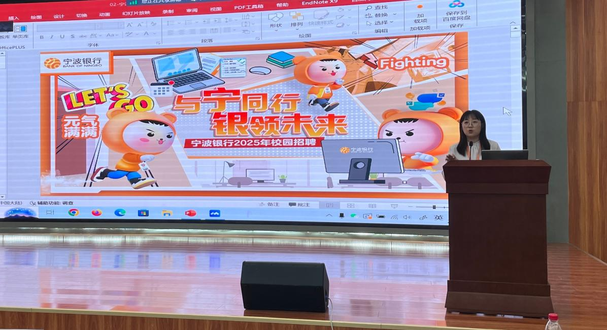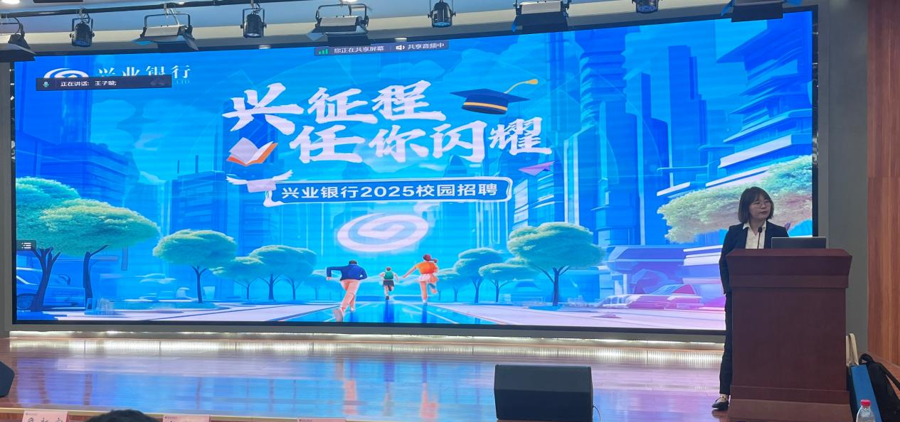 宁波银行代表和兴业银行代表分别介绍企业概况、招聘岗位和招聘流程等多方面内容,以其各自特色的企业文化和产品特色,结合当下市场的发展趋势,向同学们全面展示了银行的品牌价值和金融实力。此外,两家银行着重介绍了新员工加入后的职业发展路径、内部晋升机制等等,充分展现了两家银行对于员工能力的成长与团队融入的高度重视。