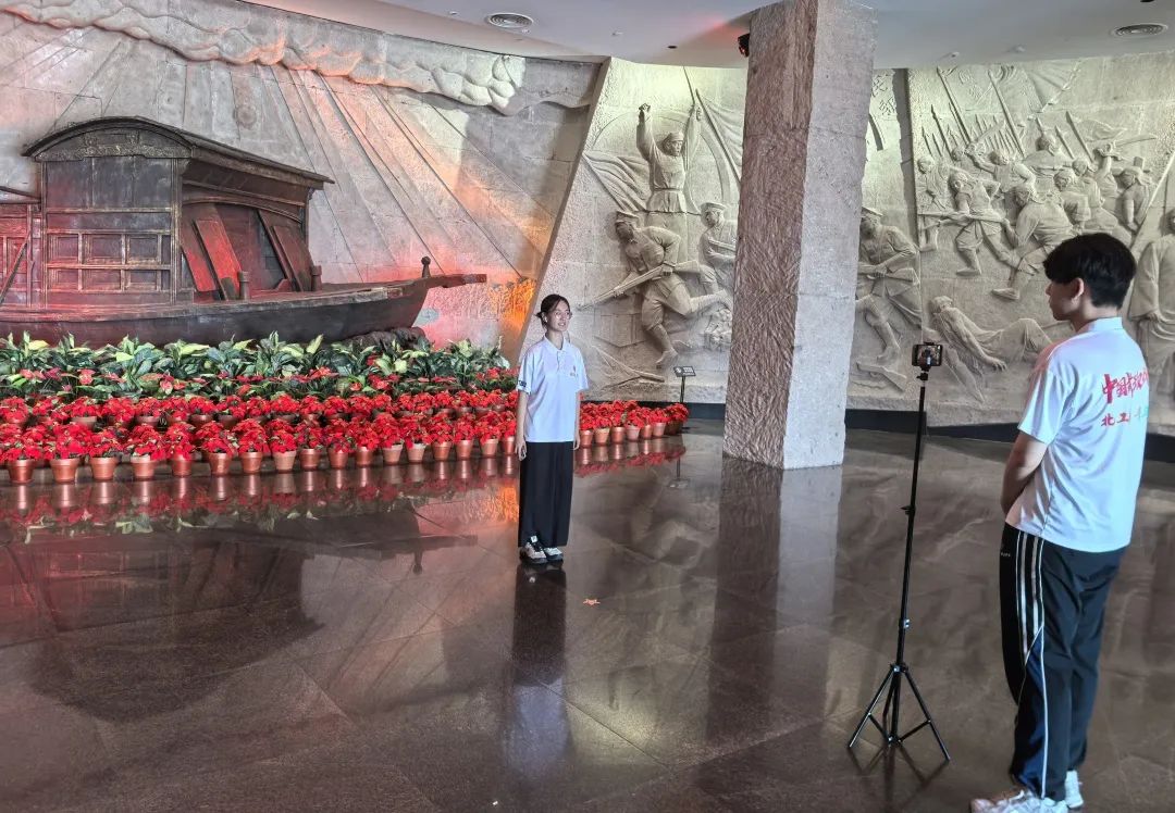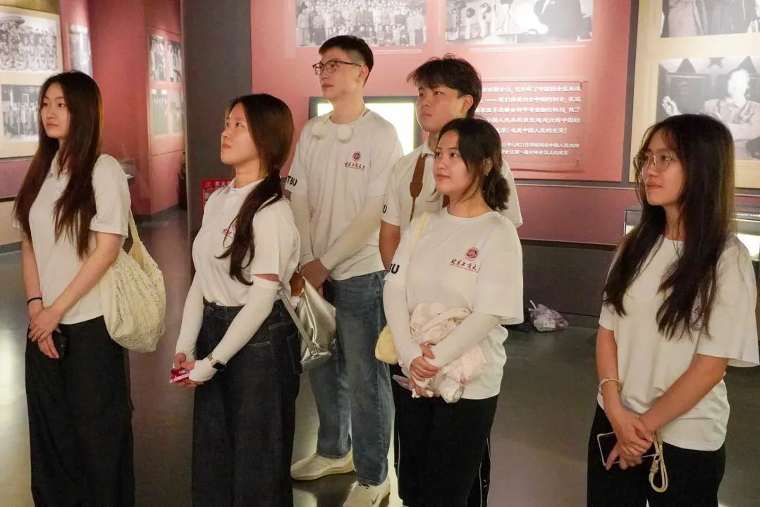 在周恩来邓颖超纪念馆,法学院“汲海河沧桑,淬法治新章”法鉴津韵·印迹寻光实践团从8000余件文献实物中,读懂两位革命家“春蚕到死丝方尽”的奉献精神,党旗下重温入党誓词,让红色信仰在青春心中扎根;站在平津战役纪念馆的英烈墙前,成员们肃立默哀,从那无声的牺牲中读懂和平的来之不易,汲取前行的信仰力量。
