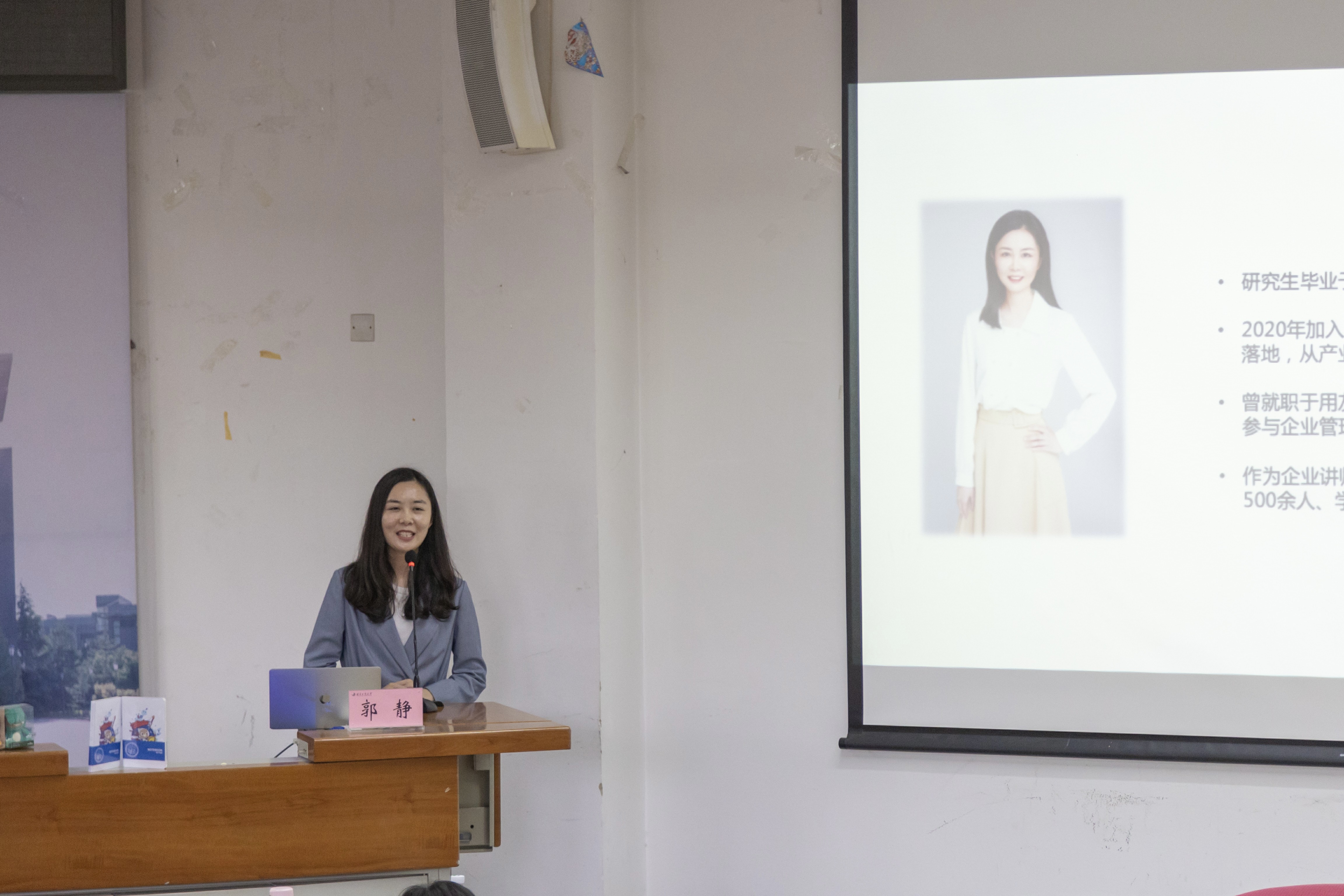 郭静谈到,现阶段人工智能行业处于弱人工智能时代,等待着我们探索的未知还有很多。郭静谈到,人工智能的市场规模正在扩大,当今时代,人工智能使产品的生产率提高,也同时使生产力成本下降。正因如此,当今市场的就业机会正在增多,也为同学们将来踏入职场创造了更多的机遇。人工智能在未来将会是我们生活和工作中的重要部分。郭静向在座的同学们讲解了全球人工智能产业的环境。她介绍了其他发达国家人工智能产业的发展之迅速,随后指出中国在人工智能行业的优势在于数据规模、使用环境、芯片需求量、语音识别技术等。但同时我国人工智能行业也面临着很大的人才缺口,她希望同学们在大学中努力学习专业知识,为祖国在未来人工智能行业可以尽一份绵薄之力。最后,郭老师对百度公司在人工智能领域发展现状及业务模式进行介绍,并在自由提问环节为同学们答疑。