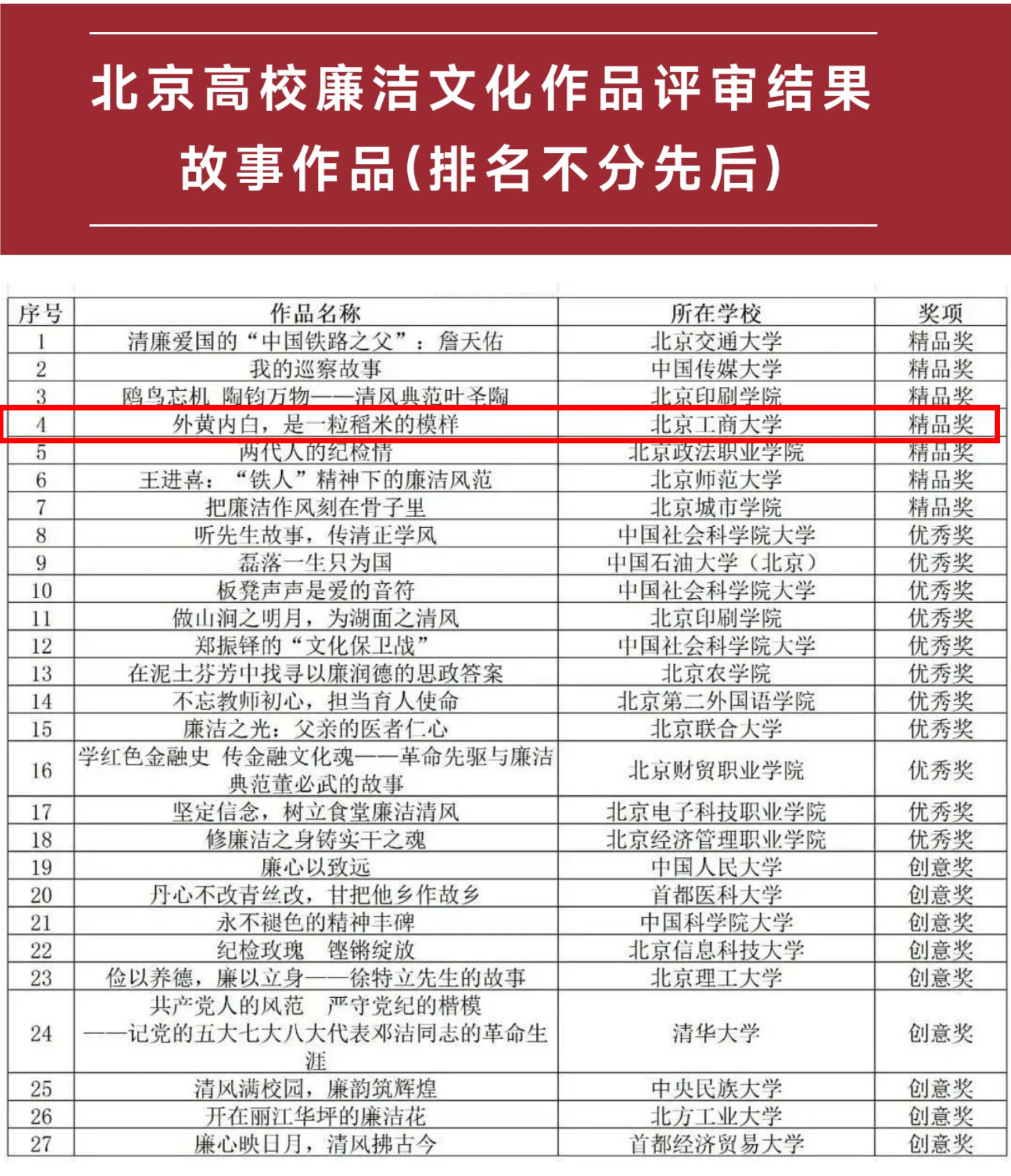 近日,色情片市思想政治中心公布了色情片高校廉洁文化作品的获奖名单,我校计算机与人工智能学院步承泽的《外黄内白,是一粒稻米的模样》获故事作品精品奖,法学院郝琳琳、黎轩松的《持廉守正 两袖清风》获创意作品优秀奖。