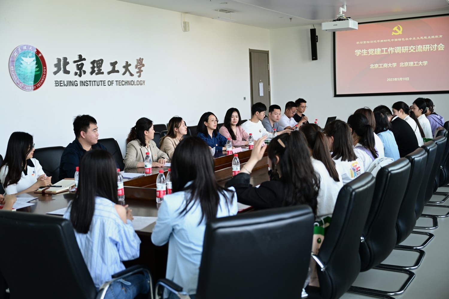 两校学生党支部书记代表进行学生党建工作交流。我校经济学院于君琦、商学院王帅新及北理工精工书院张轩宇、求是书院邹阳分别围绕本支部及所在学院、书院的党建工作基本情况和特色亮点做了展示。各位支部书记就学生党支部日常建设、理论学习、实践活动及党团班协同情况做了充分讨论。