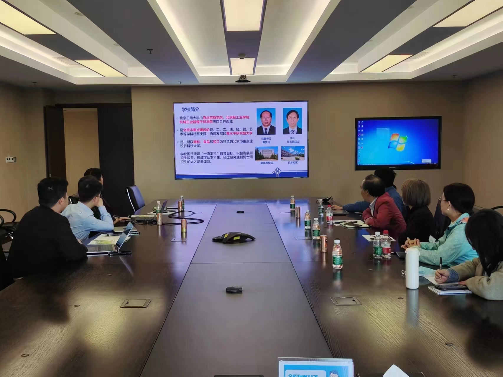 蔡强对两家单位的热情接待表示感谢!随后介绍了学校的发展历史、学校的概况,以及学院的教学、科研、学科建设、招生就业等情况。