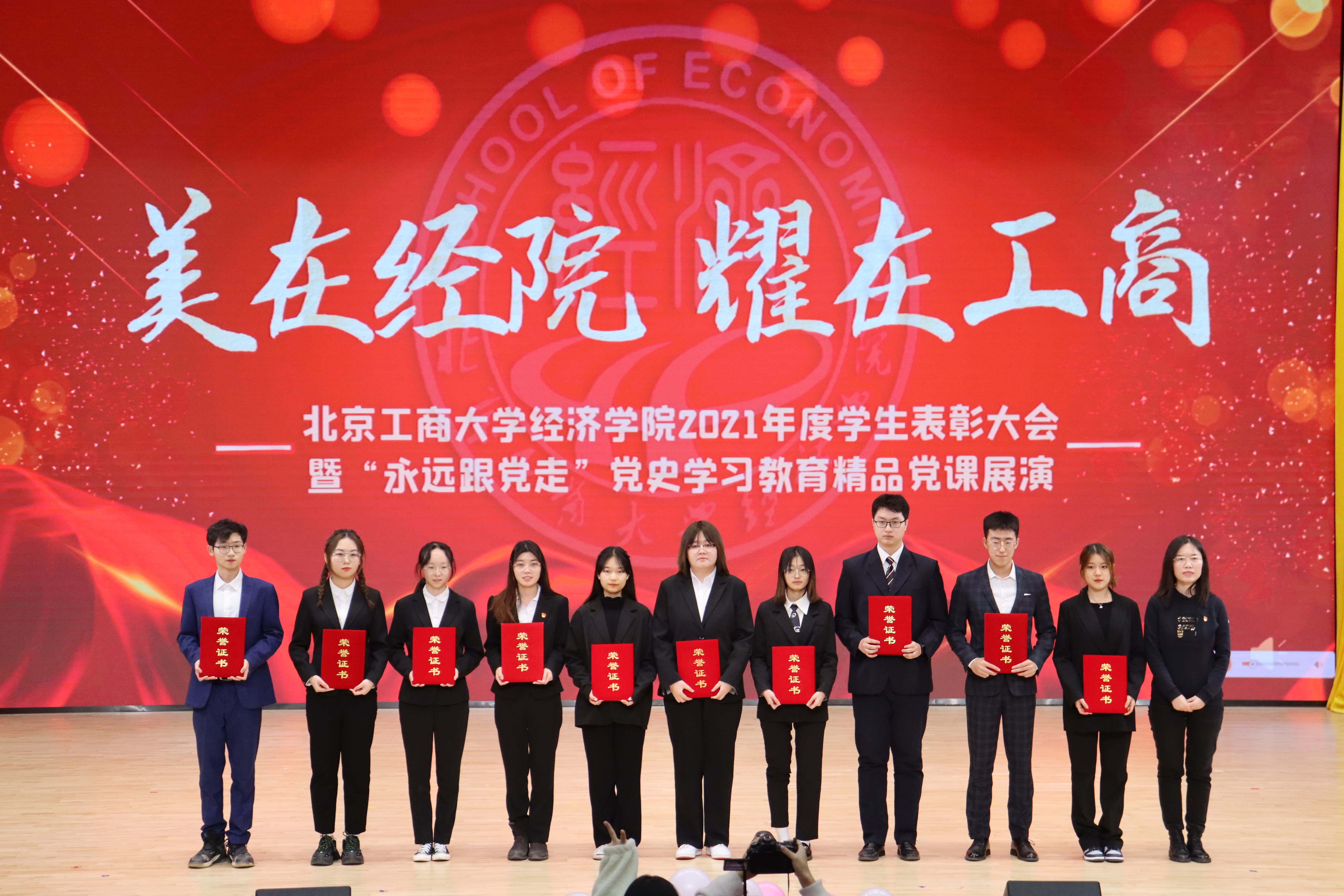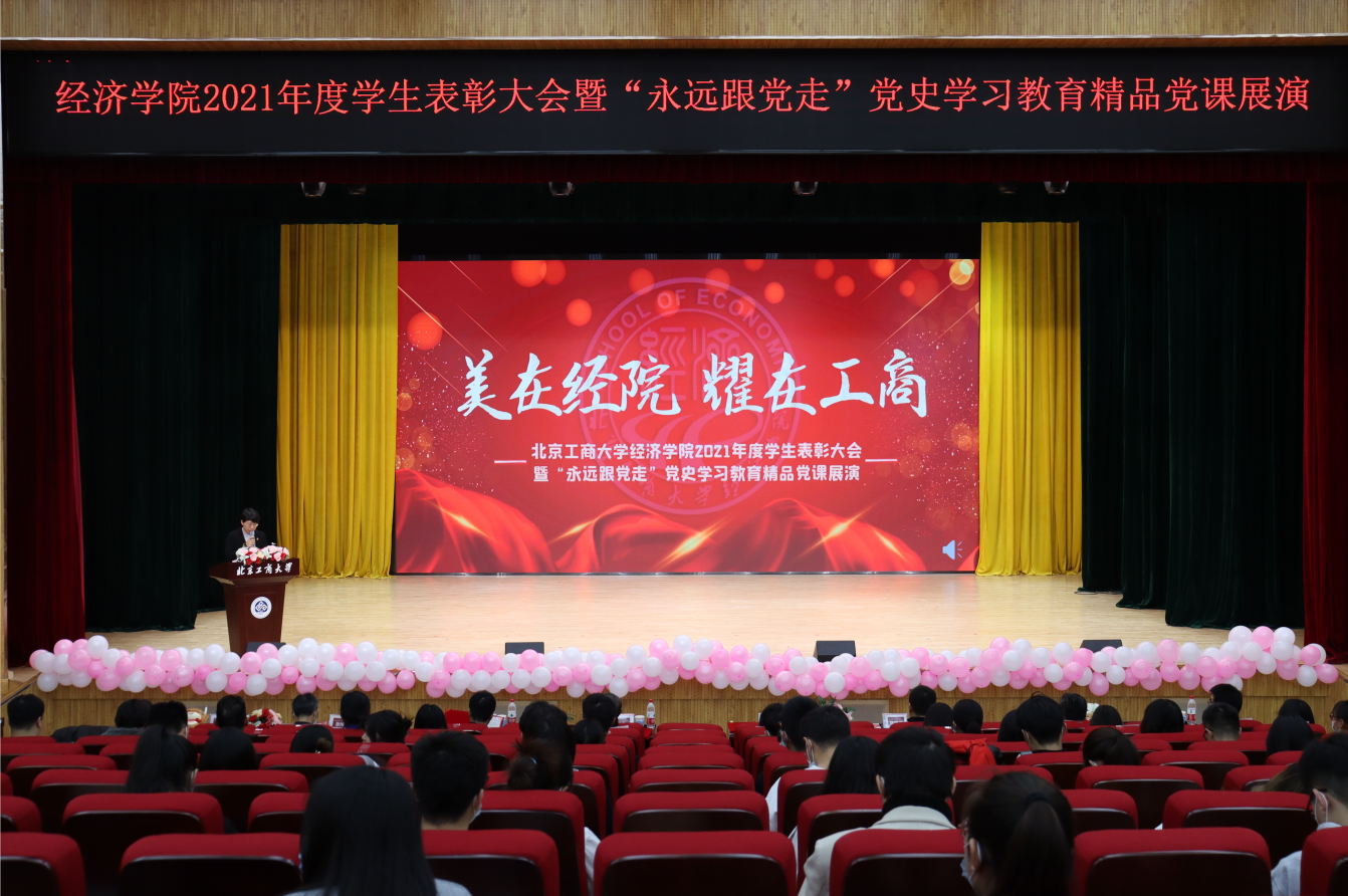 12月23日,“美在经院 耀在工商”经济学院2021年度学生表彰大会暨“永远跟党走”党史学习教育精品党课展演活动在良乡主校区举行。学生处处长吕良、校团委副书记马思潇、学院党委书记吕素香、院长倪国华、党委副书记李艳春、副院长张伟、副院长宁威、副院长许敬轩、学院辅导员及本科生、研究生代表参加了本次大会。大会由经济学院团委书记路京明主持。同时,广大师生、家长也通过线上平台,观看了本次大会。
