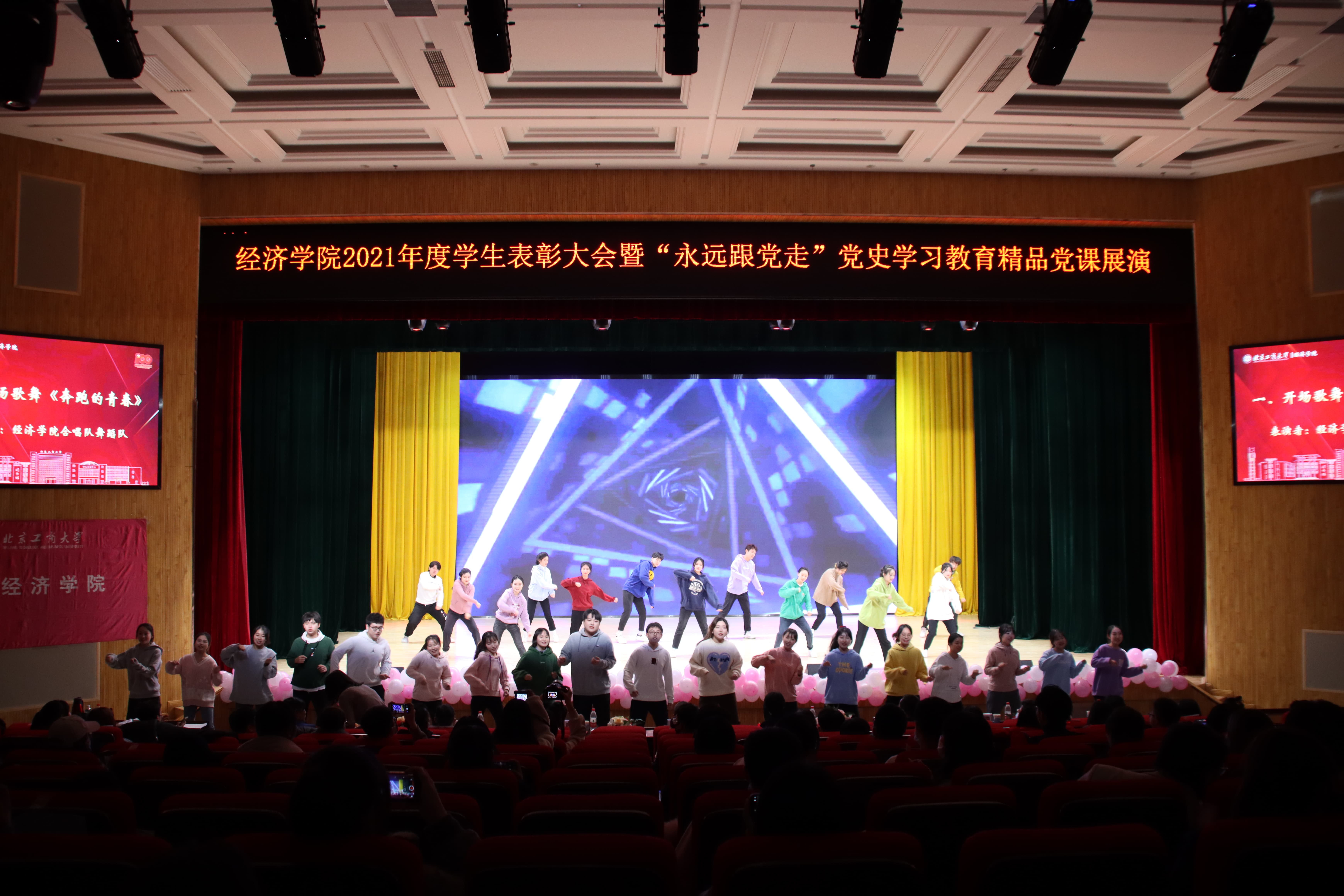 正值建党百年之际,经济学院本科生、研究生党支部分别开展了丰富多彩的以“永远跟党走”为主题的党史学习教育。支部学生遴选两幕精品党课搬上表彰大会的舞台,为观众上演了一堂精彩的党史教育课。研究生党支部以五四运动为背景,展现了中国青年在民族危亡时期国家兴亡、匹夫有责的家国情怀与青年一代的使命担当。本科生党支部结合建党百年重大任务重现了一次党日活动,串联起重大事件片段,他们从聆听者变成参与者再到讲述者,彰显了经院学子青春心向党,使命担在肩,奋进向前行的坚定信念。他们用“不忘初心,牢记使命”的拳拳赤子之情和承载“坚守信念,服务奉献”的家国情怀,真情诉说着经院学子的“使命与传承”,他们用生动而充满热血的表演诠释了经院师生的勠力同心、努力拼搏的精神风貌,激励着全院师生从奋斗故事中感悟青春,从历史的积淀中找寻力量,将经院之梦融入伟大的中国梦中,在脚踏实地中砥砺前行!