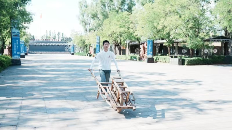 习近平总书记指出“坚持执政为民的政治立场,始终保持同人民群众的密切联系。”在八路军文化园,同学们积极参与沉浸式体验活动。推石磨见军民合力,推独轮车悟“小推车推大胜利”,在挥汗如雨的实践体验中,同学们深刻领悟“军民同心”的丰富内涵。在“八路军抗日”情景演绎中,分组对战的迂回交锋,让“游击战”的战略智慧从书本走向鲜活;钻行于“地下长城”时,军民共筑防御线的创造力与凝聚力,更化作直抵人心的深切体悟。“原来历史不是书本上的文字,而是能亲手触摸、亲身参与的记忆。”来自经济学院的张静瑶同学感叹道。