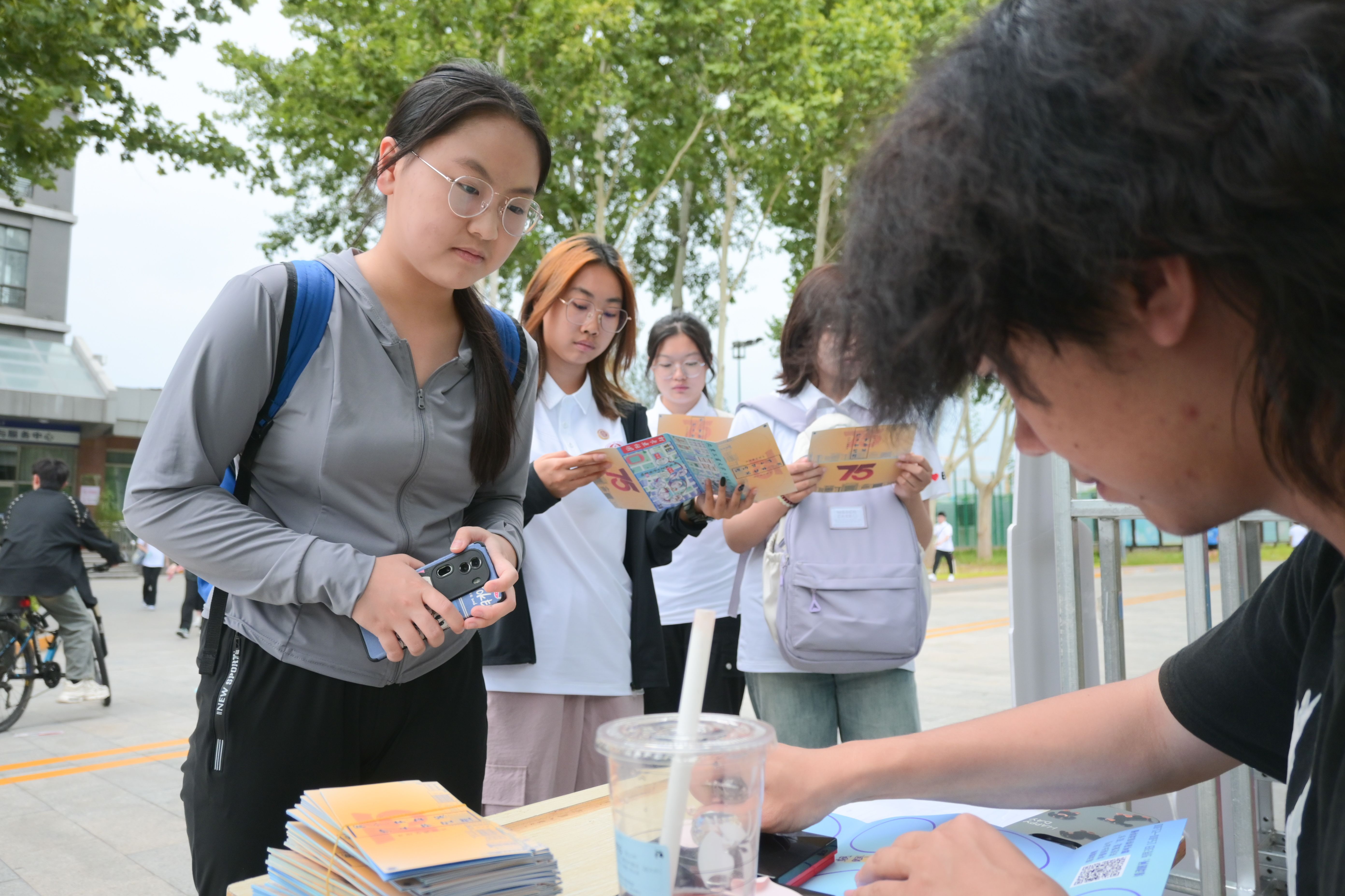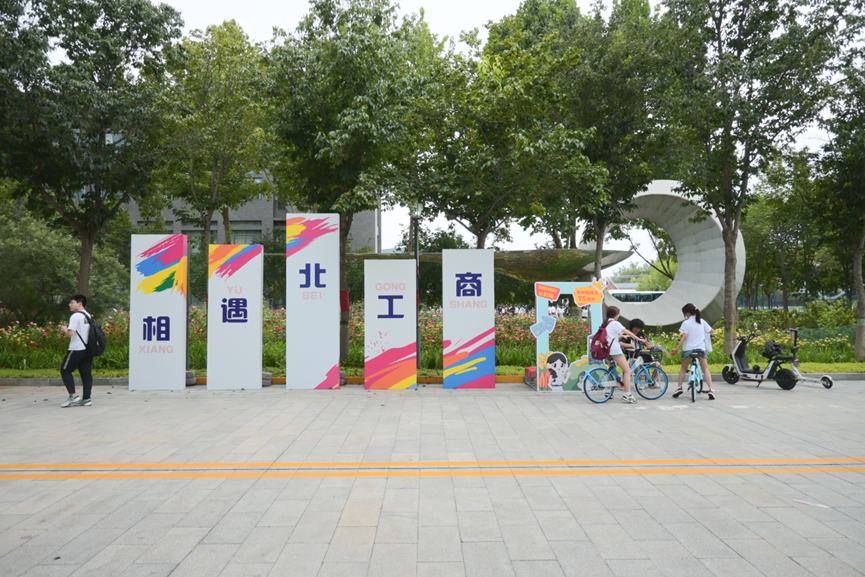 巍巍钟楼,长廊风轻,魅力学活,满腹诗书图书馆,运动活力柏林蓝,这些都是将陪伴新生们大学生涯的校园地标。9月3日,千余名2024级新生用脚步丈量校园,前往各个地标建筑,使用打卡册集章,并与现场精心设计的背景板合影留念。在钟楼,校学生会工作人员向前来打卡的新生细致讲解活动路线,图书馆前,点位志愿者耐心向新生们介绍图书馆的入馆须知,文二楼前,工作人员热情招呼来往的新生参与活动,现场好不热闹。他们兴致勃勃地穿梭于校园间,聆听微风的轻语,拥抱温暖的阳光。“一边打卡一边识校园,比起漫无目的的‘游荡’,我们很快就知道了在哪里上课,在哪里运动。”参与活动的新生纷纷为活动点赞,在欢乐和游戏间,新生们迅速熟悉了校园环境,为日后的校园生活打下了坚实的基础。