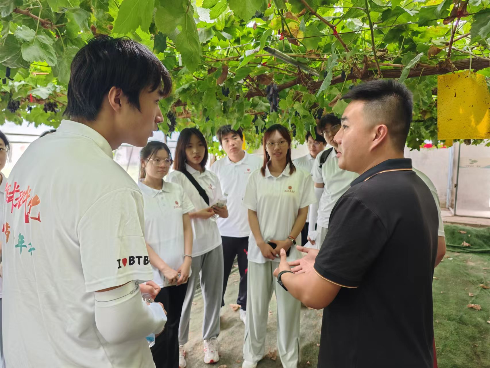 在利思田园蜜语农业生态产业园和火集村蔬菜种植基地,实践团成员通过采访、问卷等形式与酒庄负责人、村支书等交流,深入了解现代立体栽培种植、鱼菜共生、数字农业等现代化农业科技的运用和“联产单干”模式的生动实践。实践团成员纷纷表示现代智能技术的加持,传统农业在赋能增效中不断实现新质生产力“量质双升”。