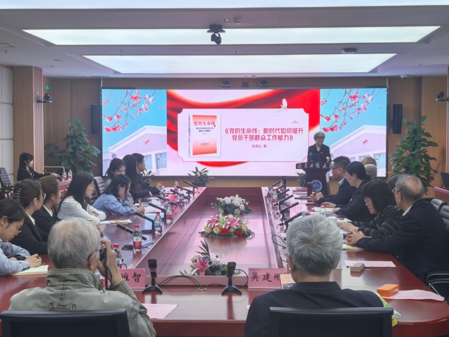 4月24日,乘着第30个世界读书日的东风,图书馆联合离退休工作处、商学院在阜成路校区举办“共读红书·同守初心”离退休党员与大学生党员红色经典图书共读分享会。通过两代党员结对阅读同一本红色经典的创新形式,推动红书阅读入脑入心,促进党员跨越代际的心灵交流。离退休党委书记兼离退休工作处处长王红英、图书馆直属党支部书记徐美叶、商学院党委书记樊江涛、离退休工作处副处长夏本翠、离退休党员代表及大学生党员代表共50余人齐聚一堂,在书香墨韵中传承红色基因,在思想碰撞中凝聚奋进力量。