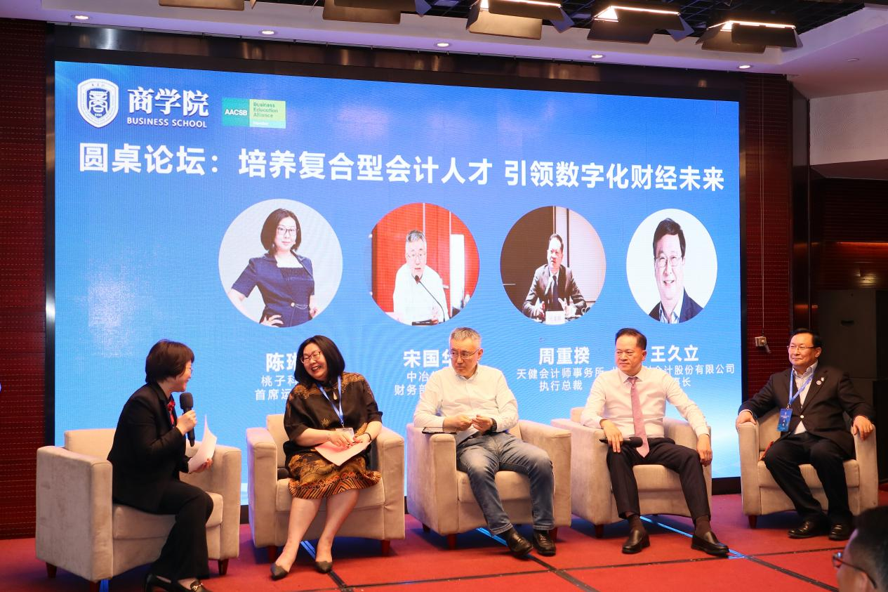 在圆桌讨论环节,何玉润与四位业界资深专家现场互动交流,对行业和企业需要什么样的会计人才、怎样培养优秀复合型人才等现实问题作了进一步探讨。
