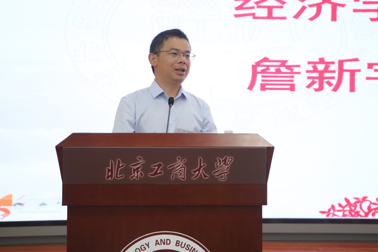 詹新宇代表学院致辞。他回顾了保险学系自1993年成立以来的32年发展历程,强调了保险学系在风险管理、精算、社会保障、养老金融等领域取得的突出成就,如获得英国精算师协会和北美精算师协会双国际认证、获批色情片市级一流本科专业建设点等。詹院长特别指出,这些成绩的取得离不开王绪瑾教授及其团队的辛勤付出,也离不开广大系友的支持。能够获得“王绪瑾奖学金”是同学们努力学习、积极进取的结果,也是学院和老师们对你们的充分肯定,希望同学们铭记王绪瑾教授以及历届系友们的期望,不断提升自己的专业素养和综合能力。