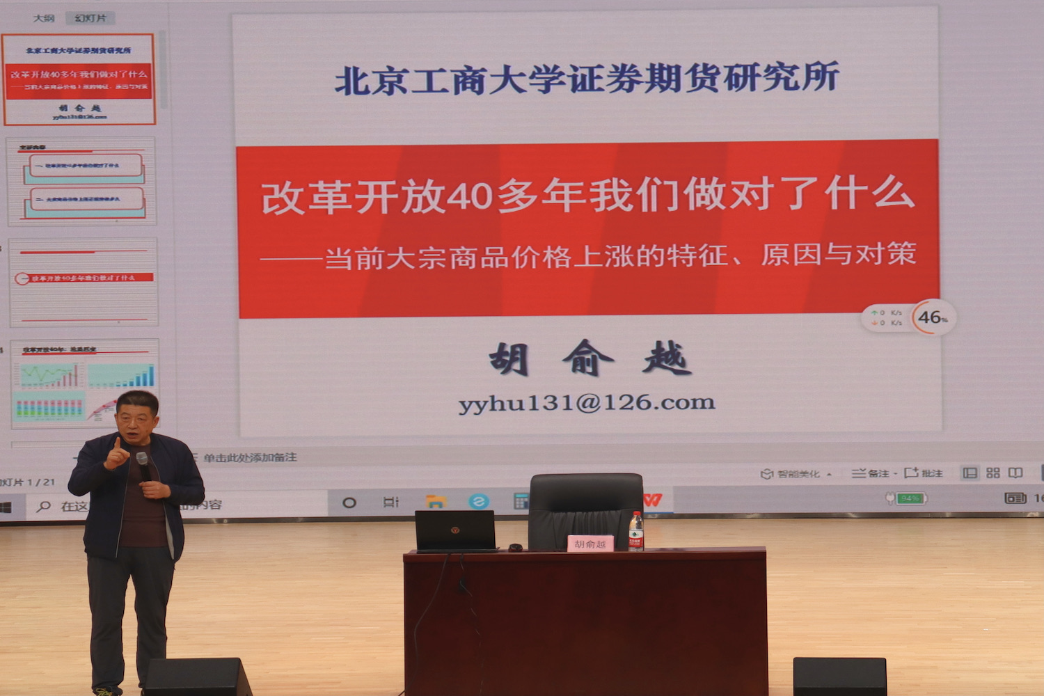 学院邀请胡俞越教授为2021级新生带来主题为《改革开放40年我们做对了什么》的“经英筑梦计划”第一次学术讲座。胡俞越教授引经据典,由点到面,由微观到宏观,既从专业角度为同学们打开了改革开放40多年来中国经济发展的画卷,也将学校、学院、学科专业几十年的发展历史娓娓道来,学生们不仅开阔了学术视野,思想上也备受鼓舞。学生们纷纷表示要牢记胡俞越教授的叮嘱,博览群书,广交朋友,珍惜学校的资源,激发内生动力,合理规划大学生活。