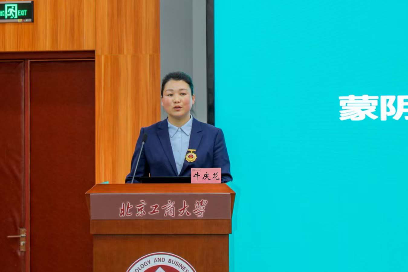 全国劳动模范、2022年冬奥会火炬手、山东省第十四届人大代表,来自沂蒙红色老区的牛庆花为同学们分享了自己的创业之路。从留守妇女到网店年营业额达400多万元的新农商,她敢于尝试,勇于坚持,致富不忘乡恩,带动身边贫困群众脱贫致富。被父老乡亲们称为绽放在山村里的“电商玫瑰”。