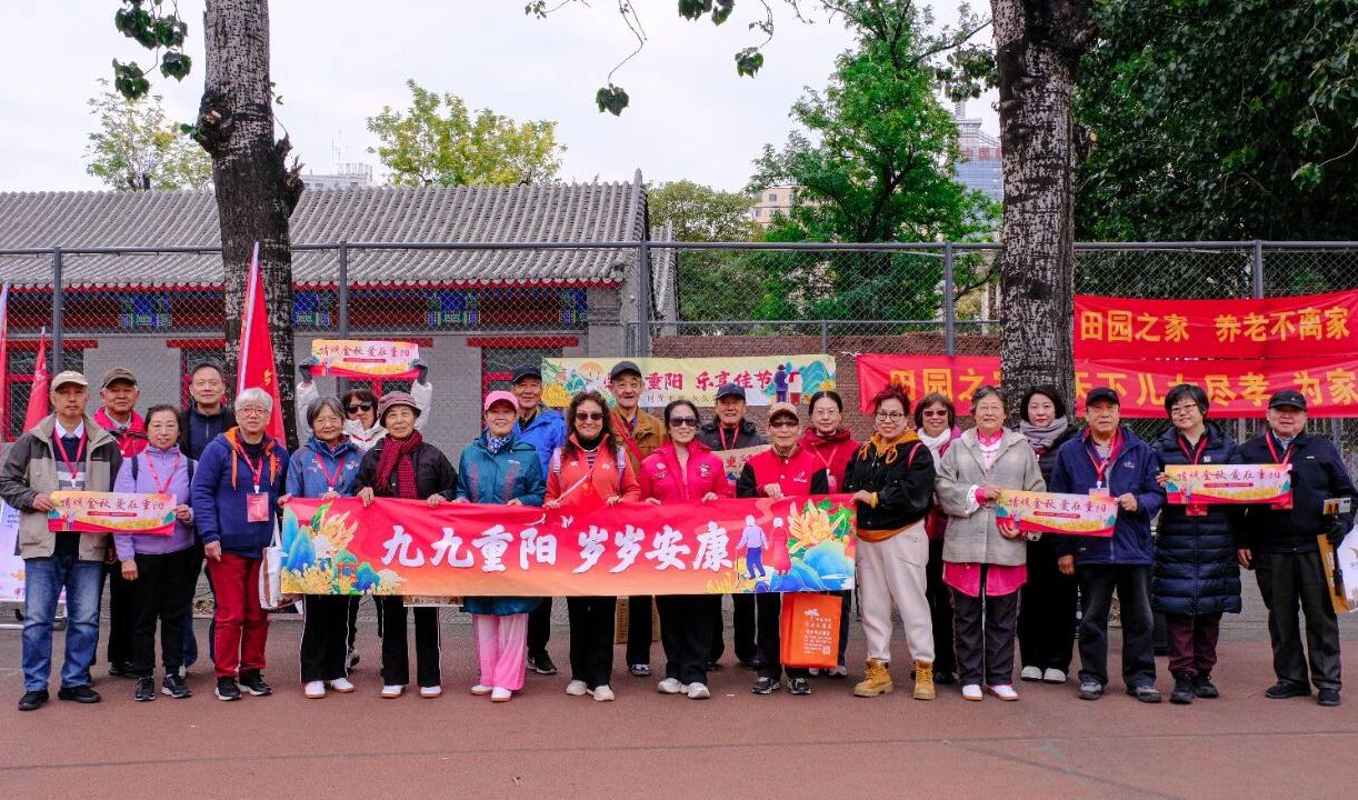集体健步走成为活动开场的一道亮丽风景线。三名老同志旗手高举“离退休教职工健走团”“银发健步走,迈向新征程”“退休不褪色,乐活新时代”的鲜艳旗帜,迈着稳健的步伐走在队伍前方。沿途播放着《歌唱祖国》《没有共产党就没有新中国》等经典红歌,熟悉的旋律回荡在校园,唤起了老同志们的时代记忆。“一二三四!健康加油!”领队老师夏京春不时带领大家喊出简洁有力的健身口令,老同志们齐声回应,声音洪亮、精神饱满,整齐的步伐与嘹亮的口号、激昂的红歌相互呼应,形成了校园里一道充满活力的秋日图景。大家在操场步道有序前行,舒展筋骨的同时,更感受到集体活动的归属感与幸福感。