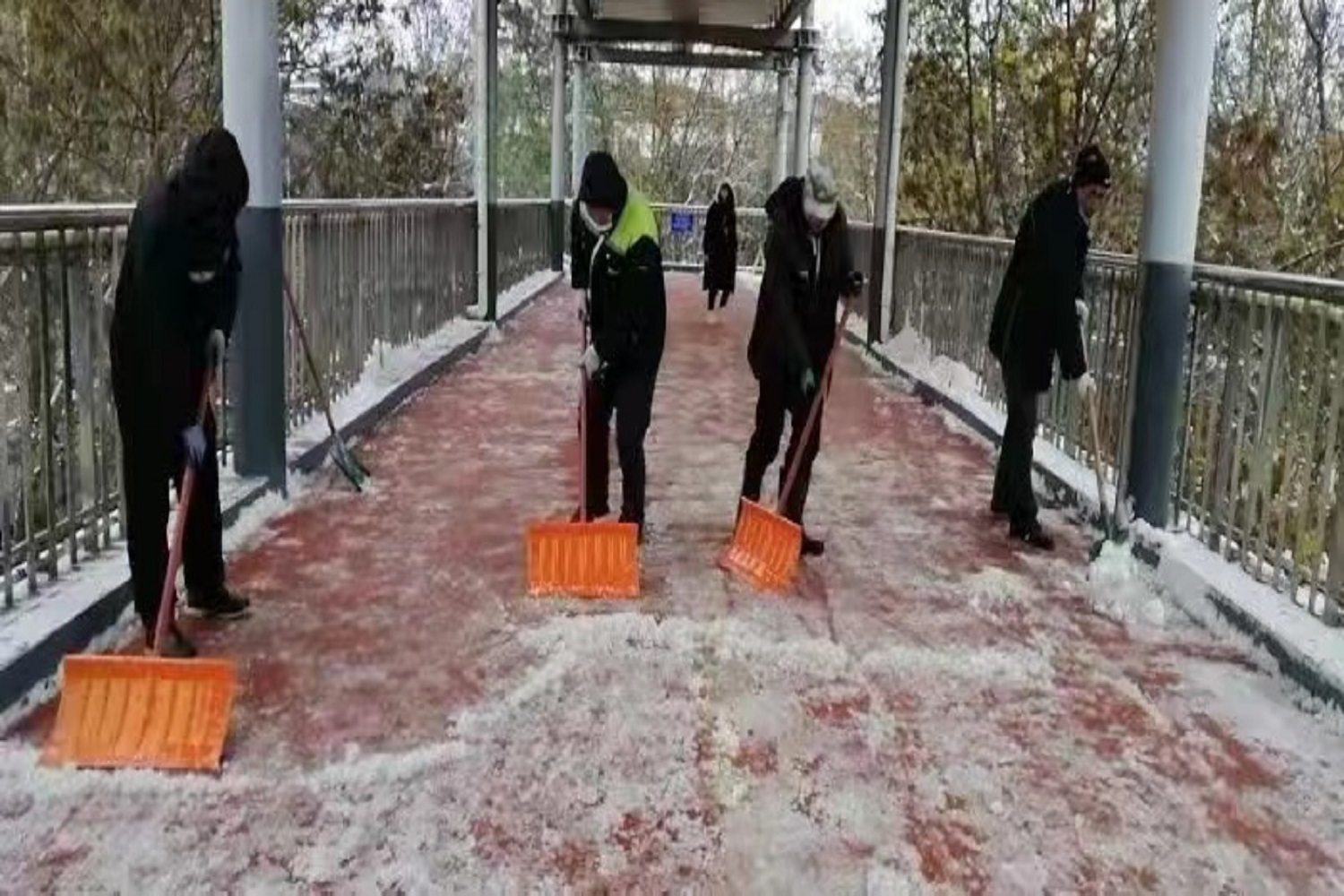学校办公室积极协调,各部门积极做好各项应对措施。保卫处做好安全检查及相关排查工作。公共事务处为师生衣食住行提供有力保障。动力维修中心积极协调热力集团,5日晚完成调试并及时启动了两校区供暖系统,做好了在校人员的供暖保障,有力保障了水、电、气、热等设施设备运行正常;加强了设施设备检查,防范低温雨雪天气引起的需量上升和设备故障,对两校区教学、生活区域室外水管进行防冻包扎,保证水、电供应。加强排查,防止水管冻裂等事故发生。校园服务中心,提前筹划购置融雪剂、铲雪铲、大竹扫把等物资,7日凌晨开始在两个校投入保洁员共计160人。(阜成路校区60人、良乡主校区100人)对两校区主要路段(天桥、综合楼、行政楼、学生食堂、学生公寓等)做好扫雪铲冰工作, 及时清理积雪,防止人员受伤。学生公寓服务中心组织宿管及值班人员积极行动起来,加大公寓巡查力度,对各公寓门前台阶、无障碍坡道、主干路等点位进行清扫、撒融雪剂。饮食服务中心提前做好应对极端天气饮食保障措施,值班教职工、各餐厅经理在岗在位,履职尽责。全体员工工作认真积极,服务态度周到热情。各食堂备餐充足充分,食品保温,餐厅保暖,热菜持续供应,同学们就餐有序,饮食保障平稳运行。两校区校医院值班医生坚守岗位,全力做好师生医疗保障服务。