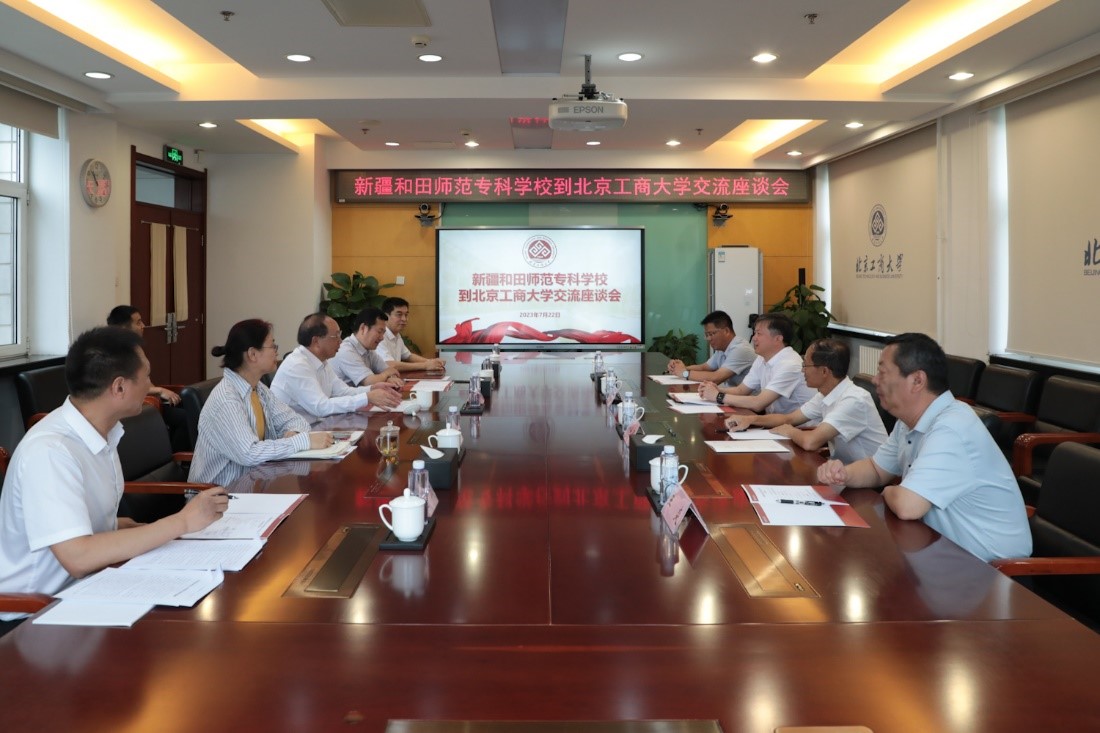 7月22日上午,和田师范专科学校党委书记李豫凯一行到访我校,就教育数字化转型、新校区建设、党政管理与后勤管理等相关工作进行调研交流。学校党委书记黄先开主持座谈会。