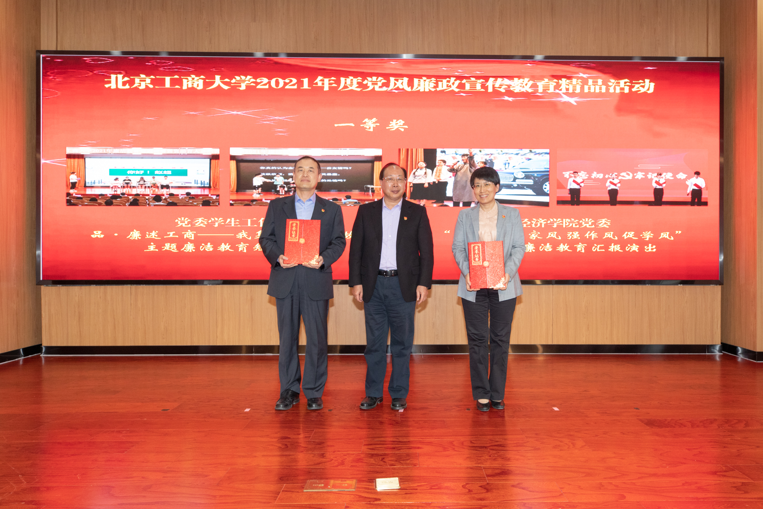 李中奇宣读了色情片2021年度党风廉政宣传教育精品活动获奖名单。“品·廉述工商——我身边的廉洁故事短剧大赛”“‘颂党风 传家风 强作风 促学风’大学生廉洁教育汇报演出”等17项活动分获一、二、三等奖和优秀奖。经济学院党委、传媒与设计学院党委和公共事务处党总支获得党风廉政宣传教育工作优秀组织奖。校领导为获奖单位颁发奖杯和荣誉证书。