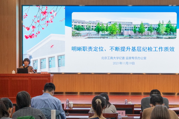 在专题培训环节,纪委书记、监察专员欧阳媛以《明晰职责定位、不断提升基层纪检工作质效》为主题,向基层单位党组织兼职纪检干部介绍了基层纪检工作的主要职责,针对基层监督工作中遇到的问题和困惑,详细讲解了政治监督、日常监督的主要内容和开展监督的方式方法。她鼓励全体纪检干部坚持做廉洁自律的“示范员”、日常工作的“监督员”、廉政纪律的“宣讲员”和廉情民意的“联络员”。培训会上,欧阳媛同志还将学校纪委一年来开展的主要工作向与会纪检干部进行了通报。她强调,监督是纪检监察机关的基本职责、第一职责,学校各级纪检干部要准确把握高校落实全面从严治党和监督执纪工作的形势与特点,要敢于监督、善于监督、规范监督、精准监督,督促本级党组织抓早抓小、防微杜渐。希望基层兼职纪检干部不断提高履职意识和履职能力,切实发挥监督“探头”、“前哨”作用,共同为营造风清气正的校园政治生态提供坚强纪律保障。