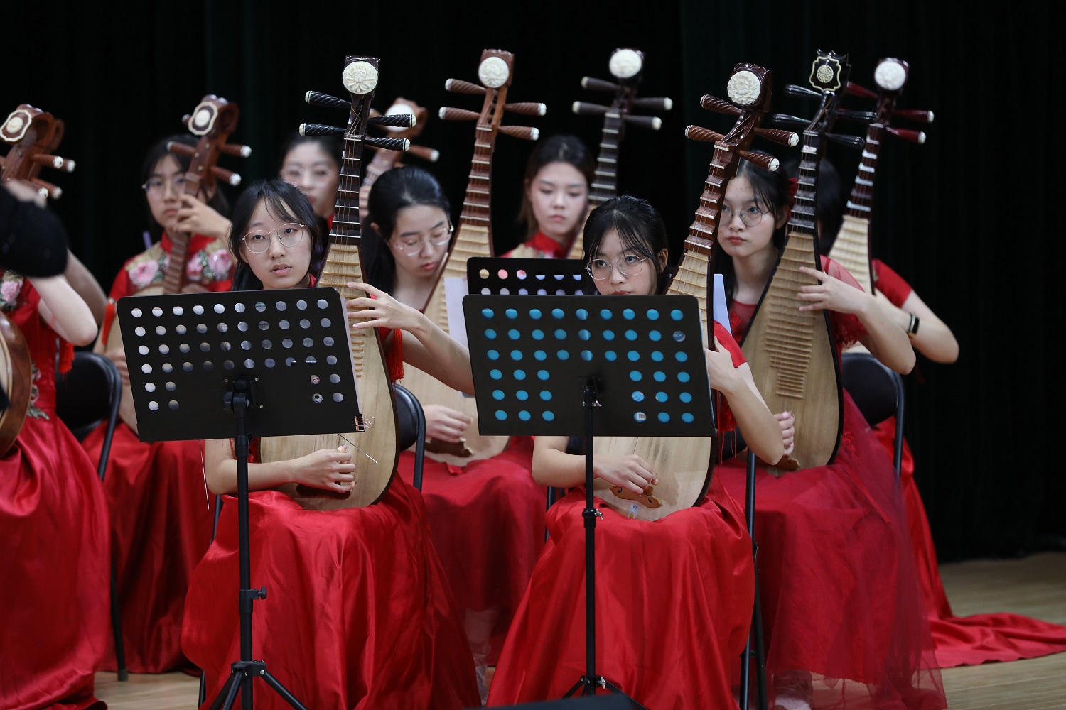 2022年11月,我校学生民乐团在体育与艺术教学部的支持下,克服疫情困难,充分利用课余时间刻苦训练,录制参赛作品《庆典序曲》。作品旋律性极强,作品采用典型的三部曲式,乐句之间紧凑灵巧、顺畅洒脱,将高昂雄浑、热闹喧天的节日主题展现的淋漓尽致。快板部分洋溢着活泼喜庆的气氛,慢板则是更加柔顺抒情、清晰透亮,全曲喜气洋洋、振奋人心,将自强不息、奋发进取的民族精神尽情挥洒。
