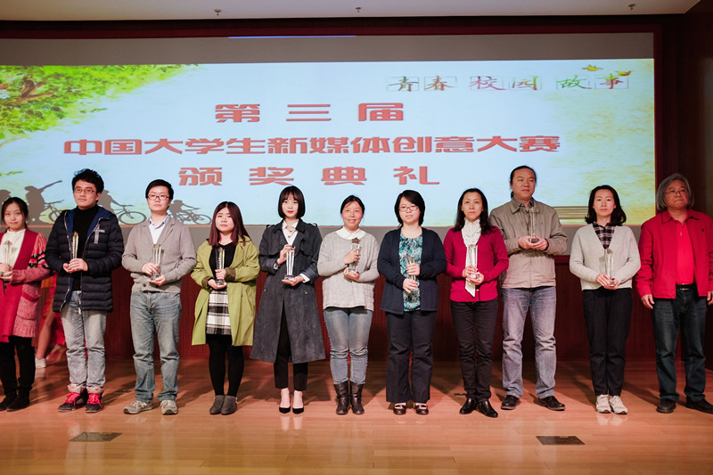 3月29日,第三届中国大学生新媒体创意大赛颁奖盛典在京举行。我校艺术与传媒学院新闻系13级学生刘函玮荣获大赛特等奖,新闻系教师陈静荣获优秀指导教师奖,我校获优秀组织奖。我校代表队由艺术与传媒学院副院长王擎教授带队参加颁奖典礼。