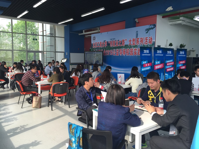 在实习招聘会进行的同时,参与到此次海淀区高层次人才发展促进会的“公益导师校园行活动”中的创就业指导老师们也开始行动起来,以“如何俘获面试官的心”、“我能创业吗”、“考研还是出国/外企还是民企?--职业定位帮你做决策”、“职场大咖—行业大揭秘”为主题,对现场希望得到创就业指导咨询的同学们进行了一对一深入指导,参与指导的同学根据个人需求与不同的老师交流,对自己有了更加明确的职业规划。