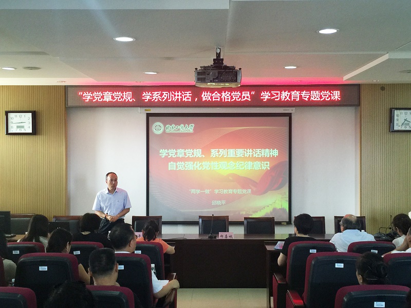 为深入开展“两学一做”学习教育,6月15日,纪委书记邱晓平为学校专兼职纪检监察干部、分管单位和联系学院的教职工党员、研究生党员上了一堂生动的党课。党课由纪委副书记郑喜姣主持。
