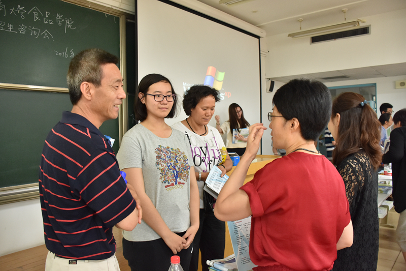 前来咨询的家长及考生走进各学院咨询室,每个学院咨询教室前都陈列着精心制作的招生宣传展板,介绍学院近三年的录取情况、专业介绍、专业特色、培养目标、主干课程、就业前景等考生和家长关心的内容,学院还为学生及家长准备了学院的招生宣传材料。学生及家长对专业培养、就业前景、国际交流等情况向各学院老师进行了咨询。各学院都派出了院领导、专业教师和学生志愿者,向考生及家长耐心地解答问题和疑惑。理学院陈晓白老师告诉记者,今年来咨询的考生和家长较去年有所增加,对数学、化妆品等专业关注较多。值得一提的是,今年前来咨询的不仅有京内的考生,还有从外地赶来咨询的。商学院何玉润老师说:“今年咨询的考生和家长很多,而且有专程从内蒙赶火车来的。近两年学生们对外培、双培计划也更加重视,咨询较多。”当问起考生和家长们都比较关心哪些问题时,食品学院副院长李秀婷说:“考生们在了解专业的同时,也比较关心外培计划及国际交流项目。”