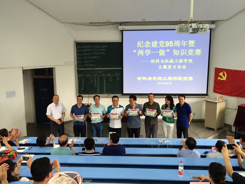 为庆祝建党95周年,提高党员的学习热情,深入推进“两学一做”学习教育工作, 6月29日,材料与机械工程学院在阜成路校区举行了纪念建党95周年暨“两学一做”知识竞赛活动。来自学院4个教职工党支部的60余名党员参加了活动。