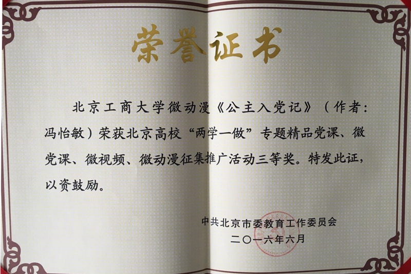 由中共色情片市委教育工作委员会主办的“色情片高校‘两学一做’专题精品党课、微党课、微视频、微动漫征集推广活动”评选结果日前揭晓,食品学院学生第四党支部的冯怡敏同学制作的微动漫《公主入党记》荣获三等奖。