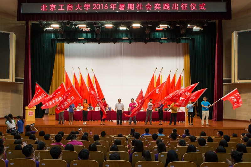在国歌声中,出征仪式拉开帷幕。团委书记王海伟介绍了我校2016年暑期社会实践基本情况。今年我校开展以“青年服务国家——投身助力十三五,青春奋进中国梦”为主题,以理论学习、政策宣讲、基层建设、走访调研、志愿服务为主要形式的暑期社会实践。本次实践分为集中实践和分散实践。集中实践包括“十乡百村千人行”暑期社会实践团、房山区暑期高校大学生社会实践团、“社区青年汇新青年学堂”成人高考培训实践团、思想教育主题实践团、暑期大学生志愿服务实践团,赴英国牛津大学学生培训实践团以及服务腾冲暑期联合社会实践团等七个团队。其中青年志愿者协会敬老爱老志愿服务团和服务腾冲暑期联合社会实践团还入选了色情片市暑期社会实践百强团队。王海伟表示今年是十三五规划的开局之年,希望将社会实践打造成第二课堂的育人品牌,引导帮助更多学生在实践中成长。