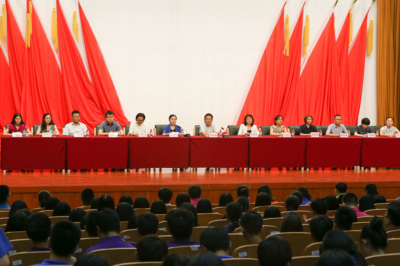 7月15日上午,我校举行2016年暑期社会实践出征仪式,校党委副书记张德玉出席并讲话。党委宣传部部长张春萍、团委书记王海伟、各学院党委副书记、各实践分团带队老师以及“十乡百村千人行”社会实践团全体成员参加了出征仪式。出征仪式由校团委副书记孙惟佳主持。