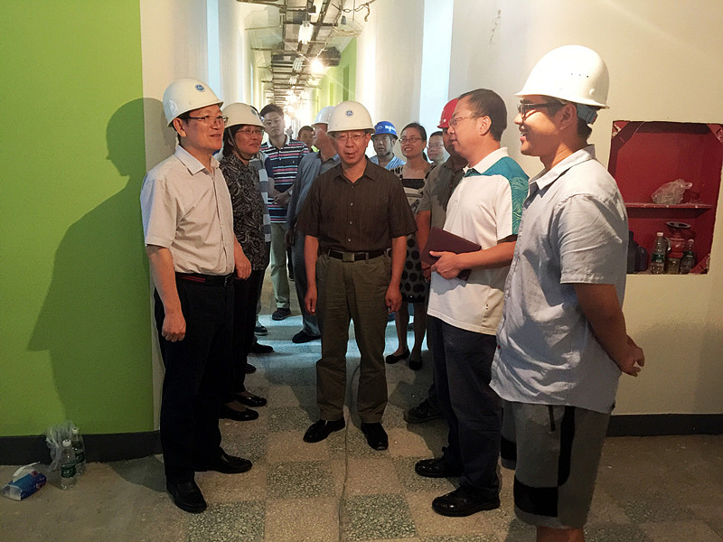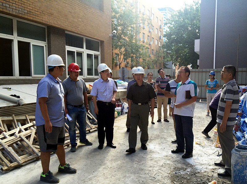 8月25日下午,校领导谭向勇、孙宝国、张耘、郑文红到紧张施工的阜成路西区12号学生宿舍楼工地调研工程质量、安全和进度情况,现场详细查看、认真了解项目内容和解决方案。