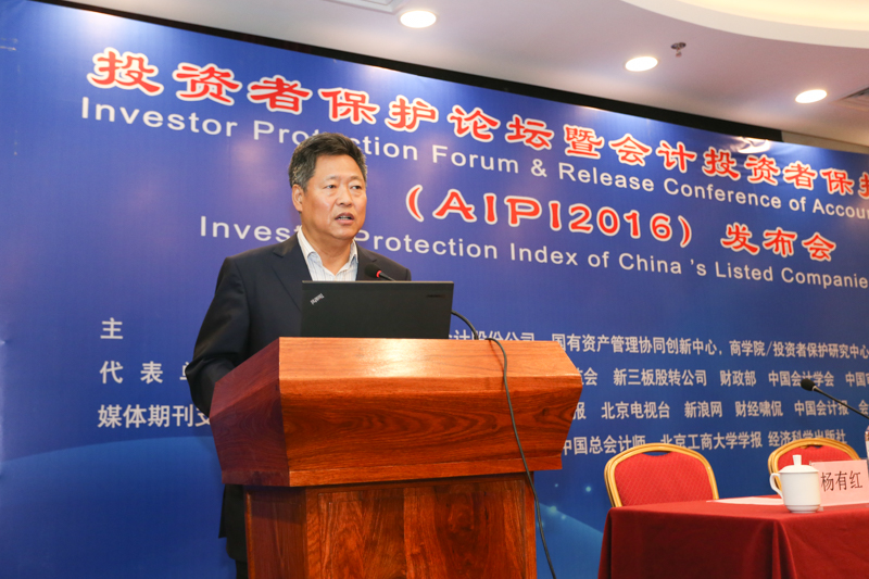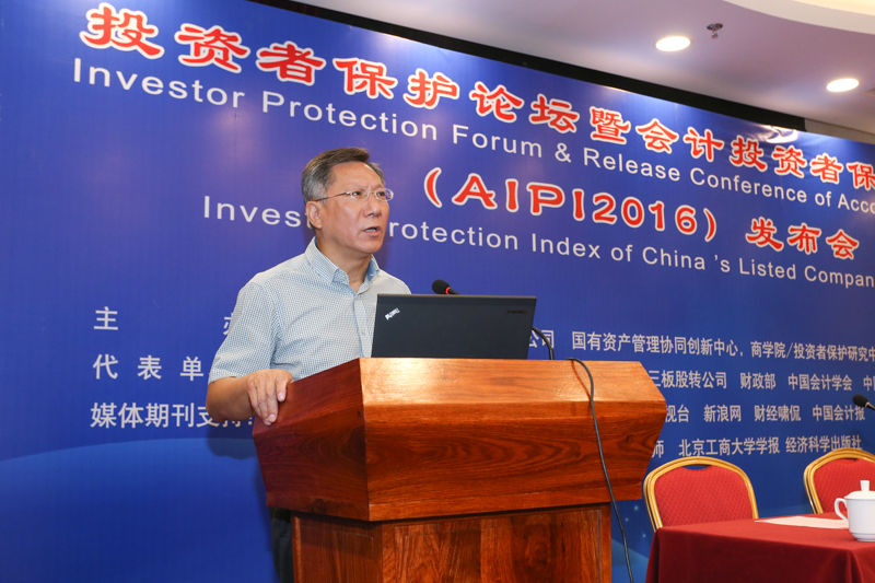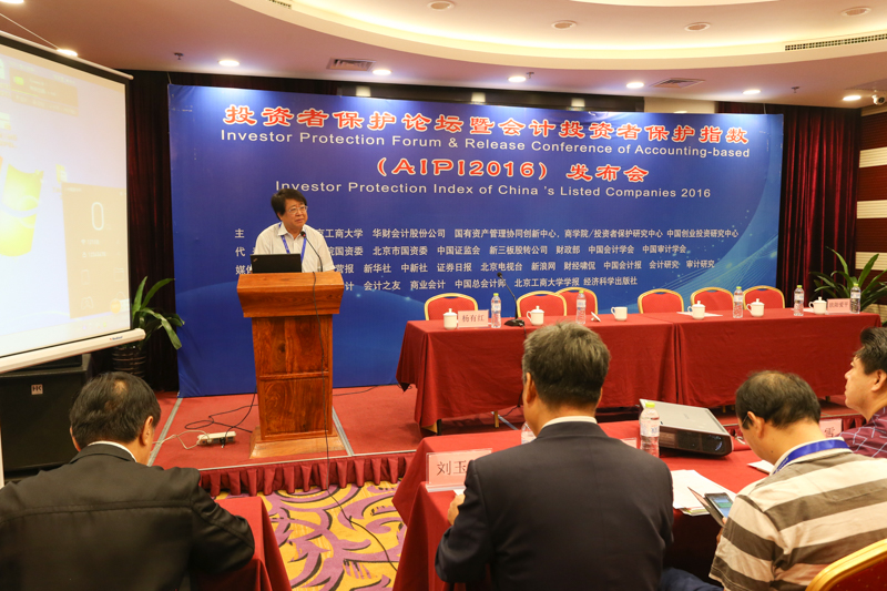 9月22日,我校召开中国上市公司投资者保护论坛暨投资者保护指数发布会,连续第七次发布该指数,同时首次发布新三板投资者保护指数。我校副校长谢志华、财政部会计司、企业司原司长刘玉廷,中国投资协会副会长、中国创投委常务副会长沈志群出席发布会。中国社会科学院财经战略研究院院长高培勇出席发布会并作主题演讲。《中国经营报》、《会计研究》等在京媒体及专业期刊,上市公司、新三板挂牌公司及投资机构代表,在京高校和科研机构代表以及商学院部分教师和学生研究生共计100余人参加了发布会。发布会由商学院杨有红教授主持,商学院党委书记欧阳爱平教授为发布会致辞。