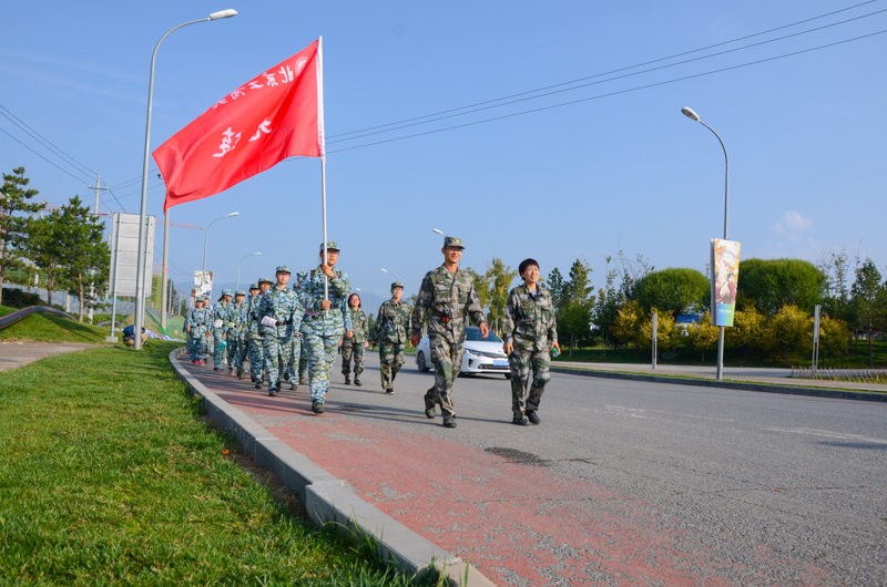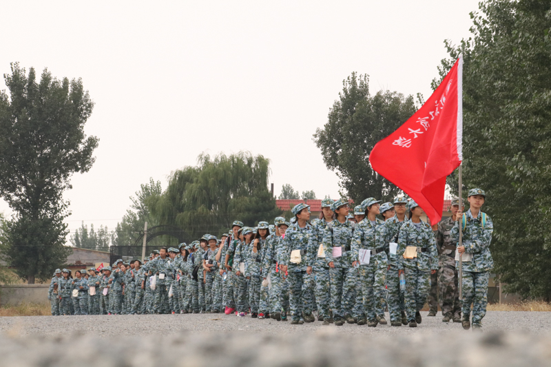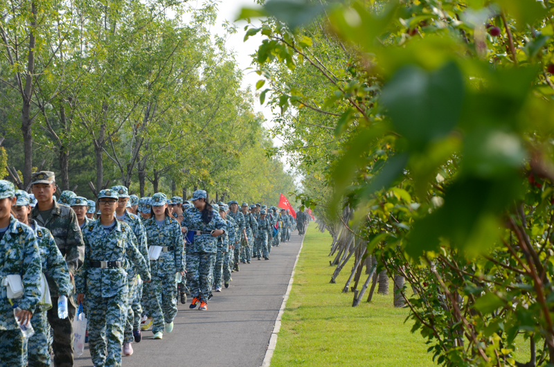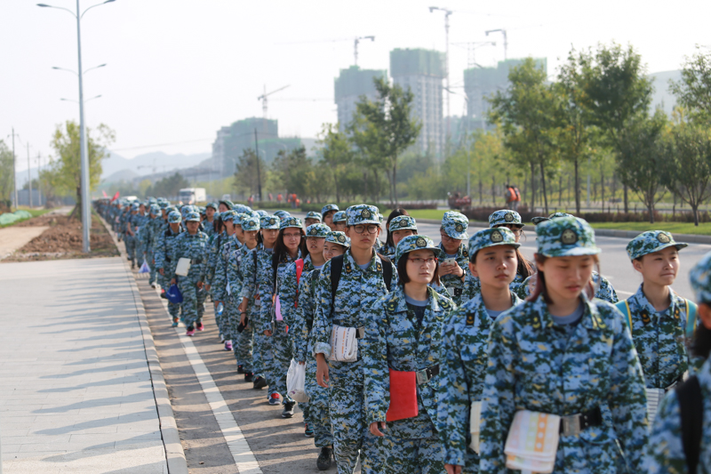 伴随着整齐的口号声,由一二三营组成的第一梯队顺次出发。招展的红旗飘扬在初秋的天空中,各连同学士气高昂,口号嘹亮。与以往军训相比较,本次是拉练里程达到10.5公里,超过之前历次校内军训拉练距离。同时承训部队精心设计了口令传递、途中防空演练、通过染毒地带等具体拉练科目,丰富了拉练内容。本次拉练除9名女生因身体原因未参加外,2600余名参训学生均完成了任务。来自3营7连的女兵纷纷表示,拉练不是第一次参加,但大学军训的拉练意义不同,更深地体会到了“不轻言放弃,努力坚持”的意义。