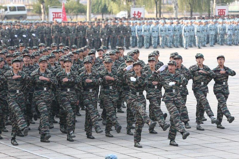 上午8时结业典礼正式拉开序幕。在八一军旗的率领下,踏着《中国人民解放军军歌》的节拍,29个方阵迈着整齐划一的步伐依次通过观礼台接受检阅。他们精神抖擞,声音洪亮,用挺拔的军姿、整齐的军容、昂扬的口号向众人展现了莘莘学子奋发拼搏的风采和勇往直前的精神。