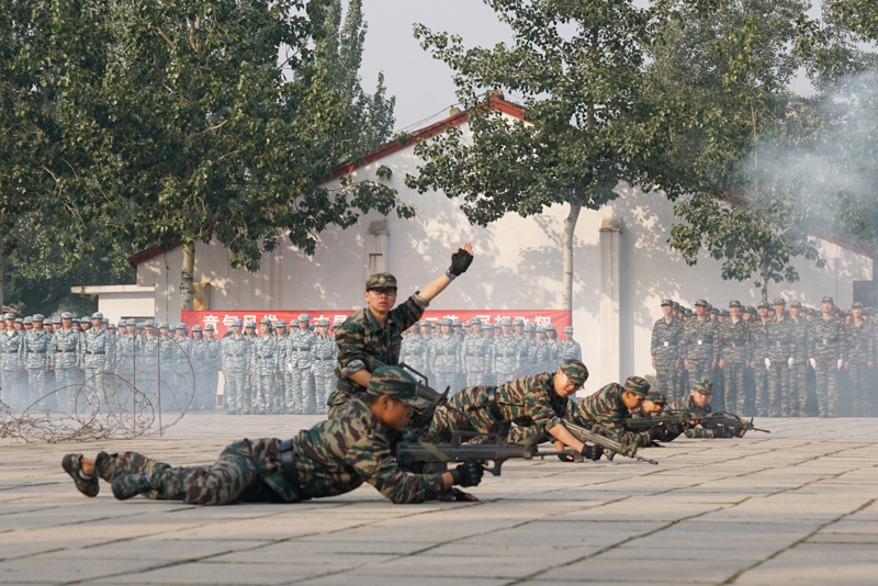 随后,军训成员在军训成果汇报中分别进行了单个军人停止间队列动作、分队队列动作、班进攻与战伤救护、拉歌对抗赛、腰带擒敌拳、擒敌拳表演。他们队列整齐划一,动作刚劲娴熟,声音铿锵有力,展现了学子们良好的精神风貌和奋勇争先、团结凝聚的军人气质,出色的表现赢得了在场领导老师的阵阵掌声与一致好评。
