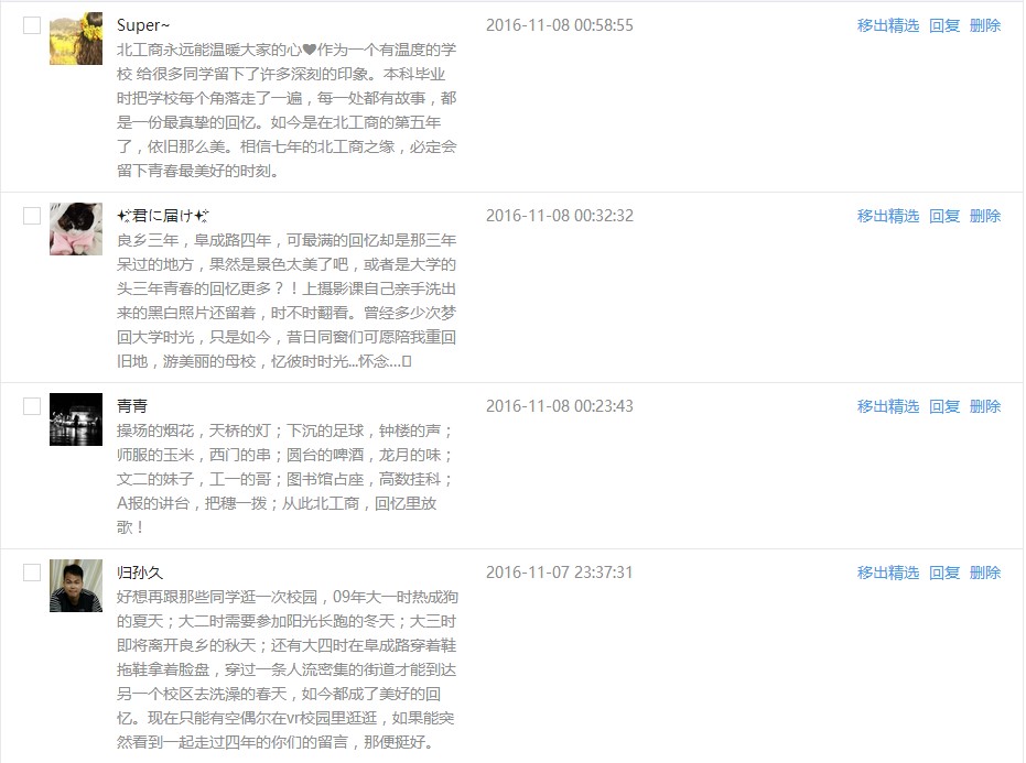 VR全景校园于11月7日17:15发布,一经发布后,反响热烈,师生校友通过微信公众平台发布了近百余条留言评论,表达在校学习的感受、回忆怀念最美校园风景,字里行间留露出对母校深深的热爱之情。截止今日13:00,发布VR全景校园的微信图文阅读量近6000人次,VR全景校园界面的浏览量已达8万人次。
