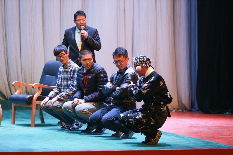 演出持续了近两个小时,包含昆曲、京剧、河北梆子等经典剧目,演员们精湛的演技、华美的服饰、专业的唱腔赢得了学生们的阵阵叫好和掌声,也使同学们深深感受到了戏曲文化的博大精深。在互动环节,中国戏曲学院的老师现场教学生水袖舞、走矮子、穿戏装等,学生们积极参与,踊跃上台学习,零距离体验戏曲的魅力。