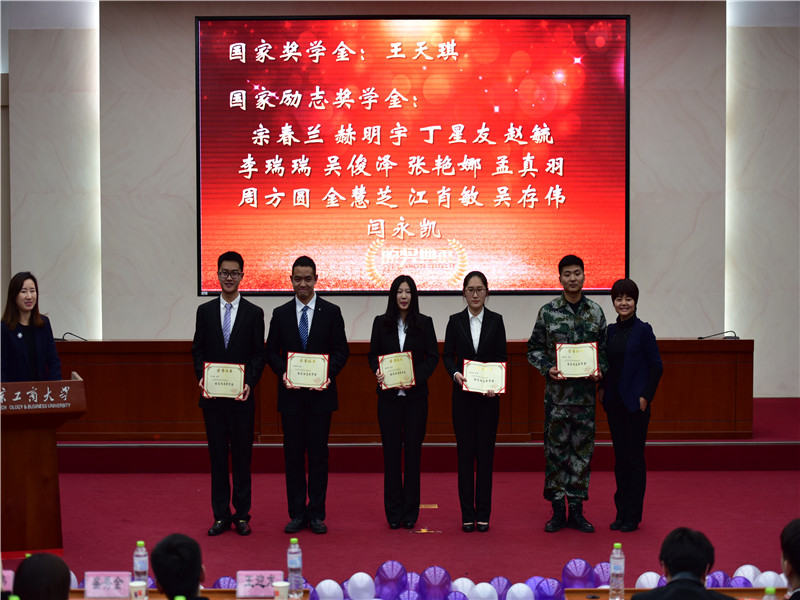 校团委书记王海伟宣读表彰决定。大会表彰了国家奖学金、国家励志奖学金、校级、市级优秀班集体、校三好学生、优秀学生干部、优秀班级助理、法院之星、团学青优秀干事等。颁奖期间,播放了精心制作的视频,用声音和画面分别展示了法学144班、学院之星、校级三好学生、优秀学生干部们勤奋学习、积极实践、热心公益、团结奋进的风采。