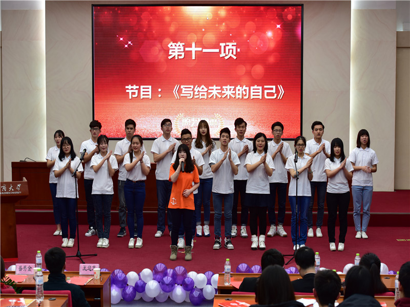 《成长路上,感谢有你》的视频生动的记录了学院的16位班主任默默付出、关爱学生的一点一滴,他们诠释了什么是责任、爱心、奉献。学生代表为在场的老师献上鲜花,送去了内心最真挚的感谢和祝福。朗诵表演及合唱《写给未来的自己》中,大家一起追忆往昔,展示了我院学子追逐梦想、积极向上的精神风貌和对工商的深厚情谊。