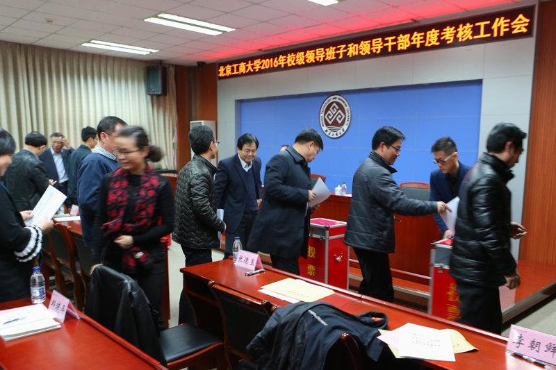 参会人员根据学校领导班子成员的述职报告和日常工作,以无记名的方式填写测评表。测评会还对2016年干部选拔任用情况开展了“一报告两评议”,对党委书记抓基层党建工作进行了评议。