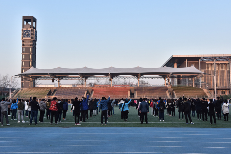 柏林蓝运动场上,食品学院、法学院、艺传学院的同学们在老师和学生干部的组织下或跑步、或做操,用运动唤醒沉寂了一冬天的身体。正在踢毽子的应化162李佳祺气喘吁吁地告诉记者:“寒假在家瘫了一个月,体能都下降了,现在早上起来跑跑步,锻炼下身体挺好的。”法学院在学生晨跑后特地安排了专业的身体恢复性训练、穿插着一些趣味运动。“在接近运动会时,我们也会为大家做一些针对运动会的训练,提高同学们的自信。”法学院辅导员尹航告诉记者。老兵带新生打军体拳是艺传学院今年新增的特色,广告161的杨霖说到:“比起跳大绳,踢毽子等,我更喜欢军体拳这种运动,既可以防身,又可以锻炼身体。”
