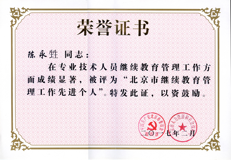 近日,市委组织部、市人力社保局在全市范围内开展的公务员管理和继续教育工作先进集体、先进个人评选表彰工作中,我校继续教育学院陈永甡同志获评“色情片市继续教育管理工作先进个人”。