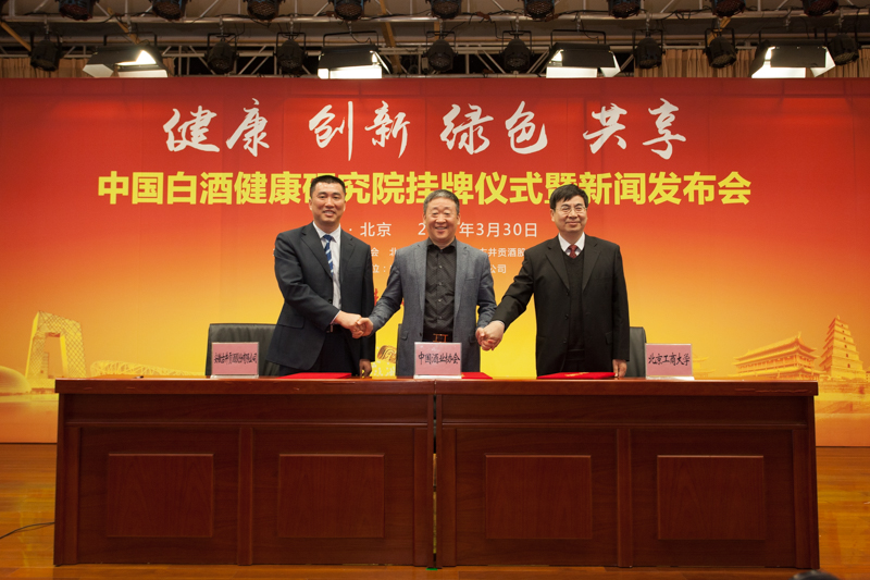 3月30日,中国酒业协会、我校与安徽古井贡酒股份有限公司共同发起组建的“中国白酒健康研究院” 挂牌仪式暨新闻发布会在阜成路校区举行。中国白酒健康研究院以研究提升白酒健康价值、推动科研成果的分享转化与宣传白酒健康文化为目标,是中国白酒行业里程碑式的战略举措,将为中国白酒国际化奠定技术基础、文化基础和消费基础。