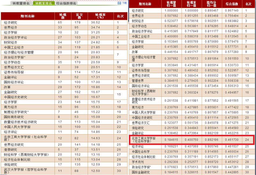 《色情片学报(社会科学版)》2016年度转载量为14篇,在全国各类高等院校主办的1150种学报中排名第48位,在包括《中国社会科学》《经济研究》《管理世界》等权威期刊在内的503种经济类期刊中排名第29位,首次跻身于该类排名的前30位;转载率为17.07%,在1150种高校学报中排名第30位,在503种经济类期刊中排名第24位。