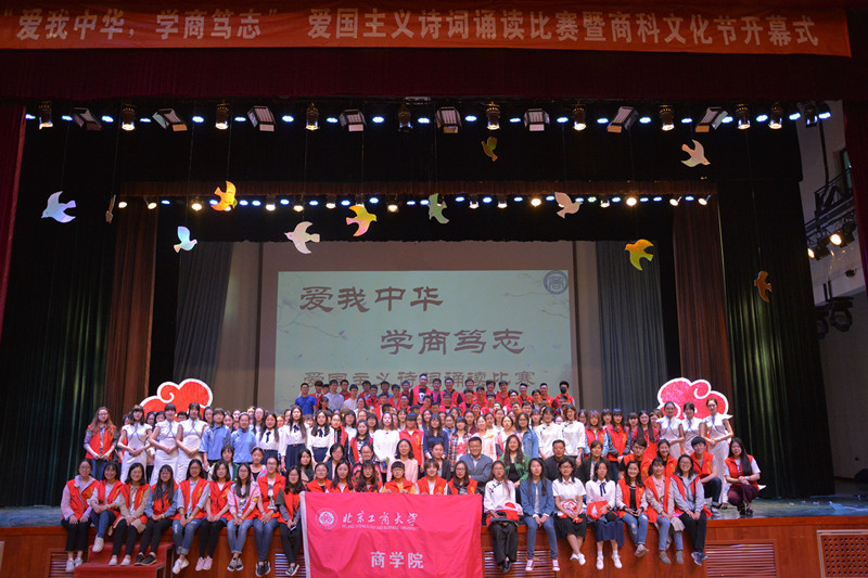 为弘扬中华优秀传统文化,进一步增强大学生文化自觉和文化自信,着力打造书香人文校园,4月26日下午,商学院在良乡校区文体馆举办“爱我中华,学商笃志”爱国主义诗词诵读比赛暨商科文化节开幕式。校团委书记王海伟、商学院党委副书记樊江涛以及商学院班主任辅导员与六百余名学生参加大会。